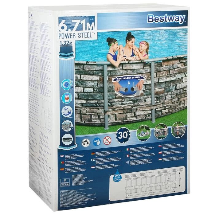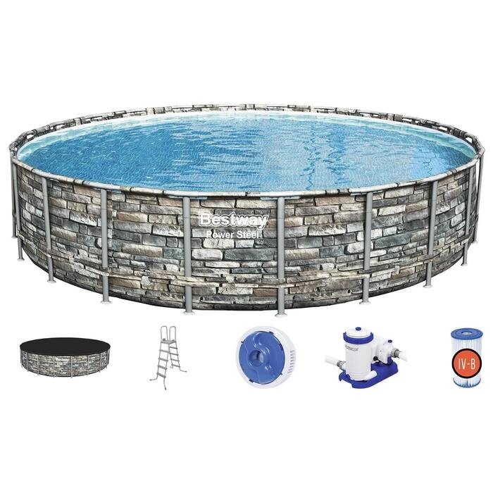 Бассейн каркасный Power Steel, 671 x 132 см, фильтр-насос, тент, лестница, 56889 Bestway
