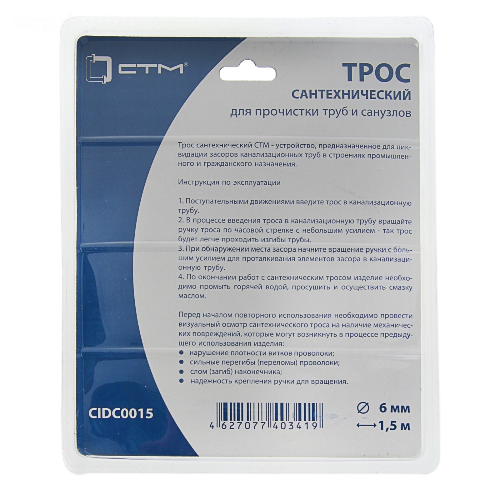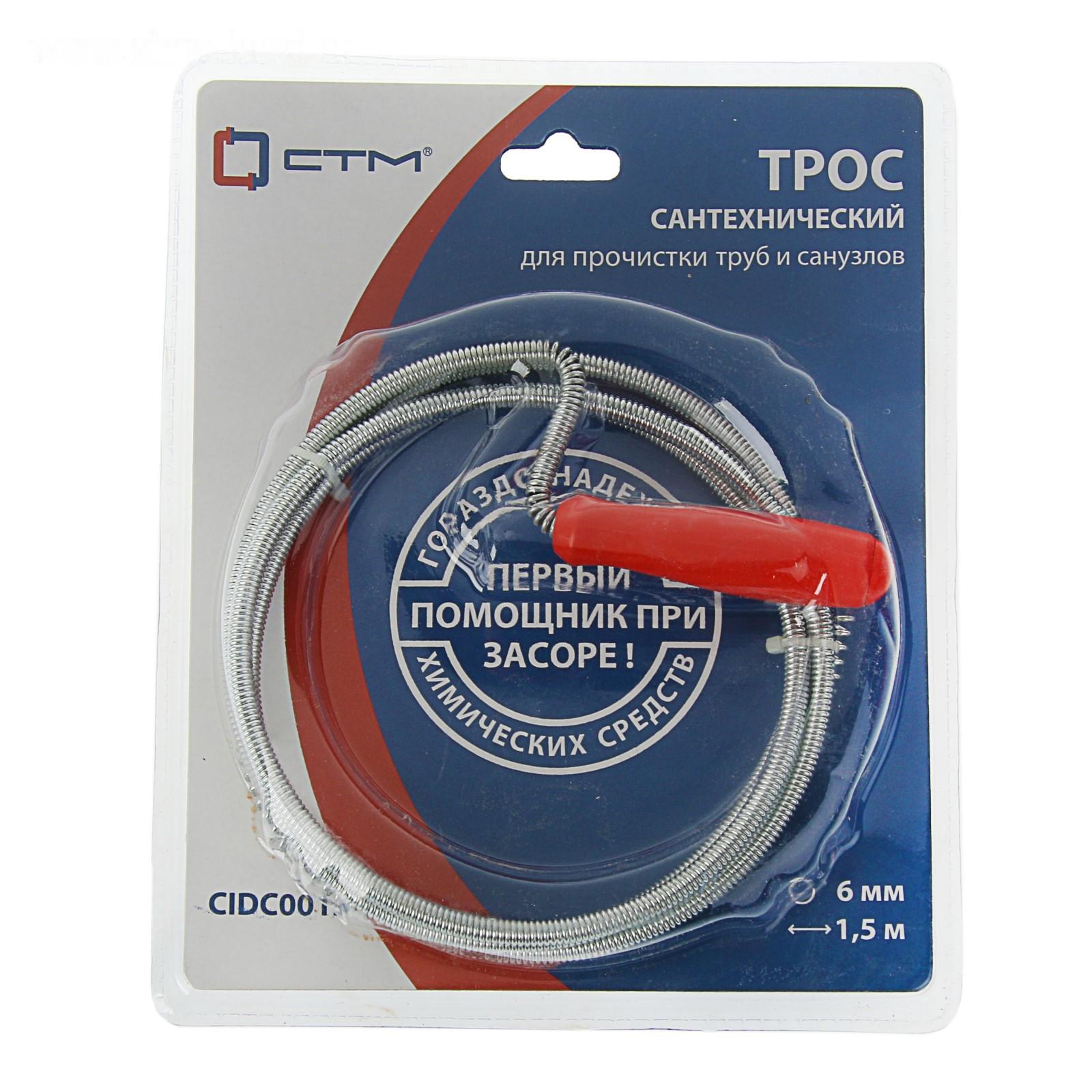 Трос сантехнический "СТМ", оцинкованный, с ручкой, d=6 мм, L= 1.5 м