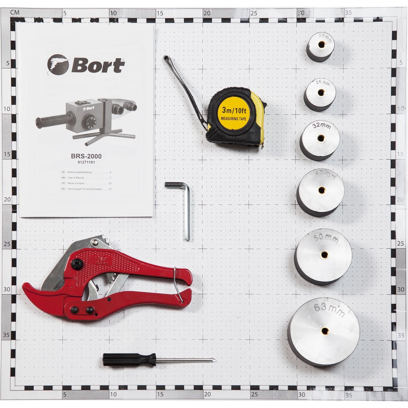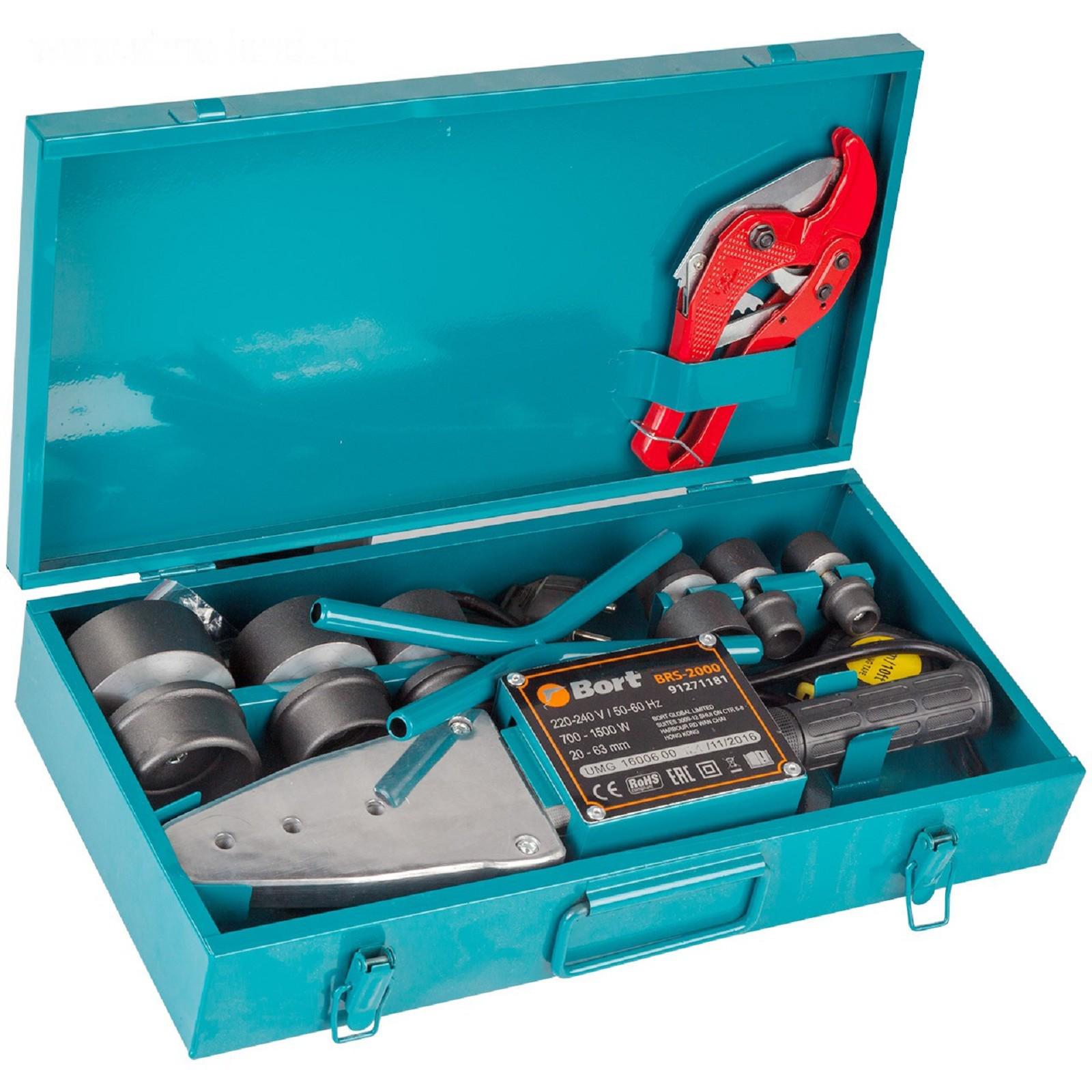 Аппарат для сварки пластиковых труб Bort BRS-2000, 1500 Вт, 300 °С, 6 насадок 20-63 мм