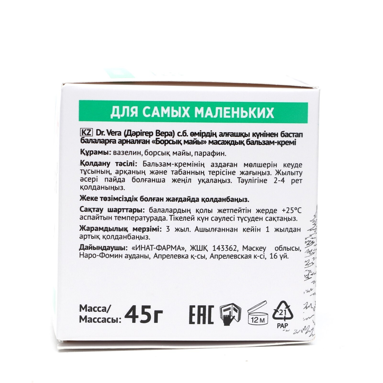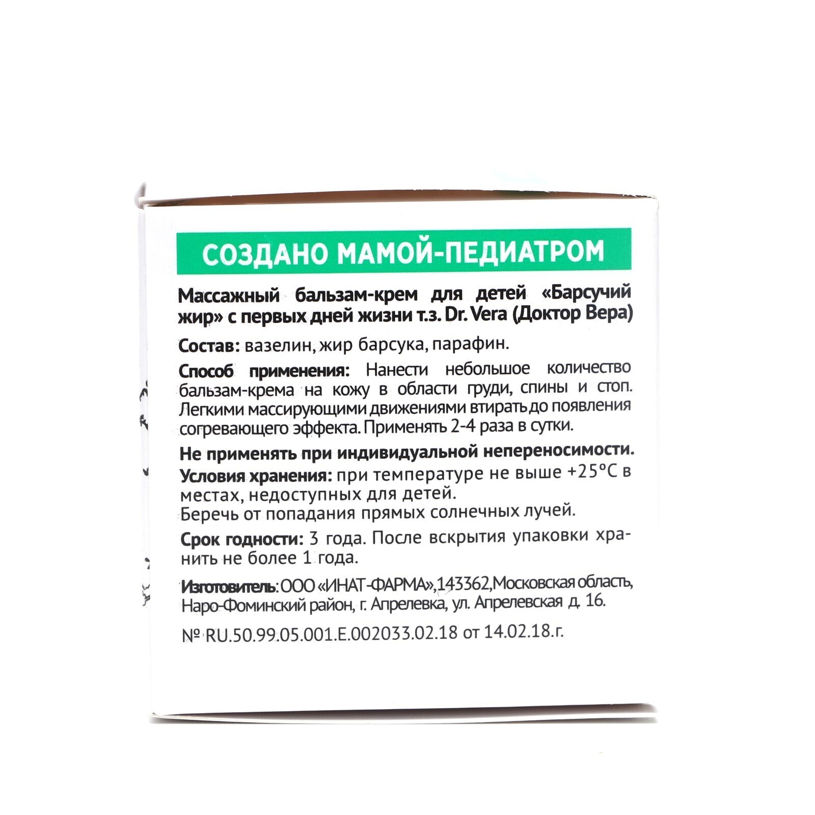 Барсучий жир, Доктор Вера, массажный крем-бальзам, 45 г