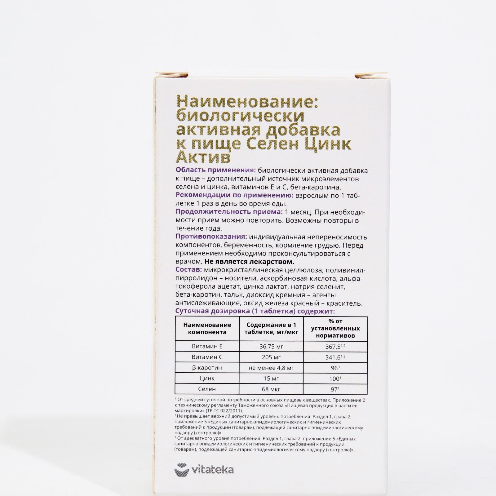 Селен Цинк Актив Витатека, 30 таблеток по 600 мг