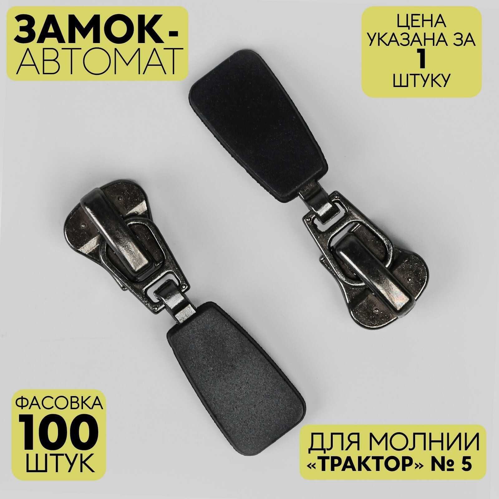 Замок-автомат для молнии «Трактор», декоративный, №5, цвет чёрный никель