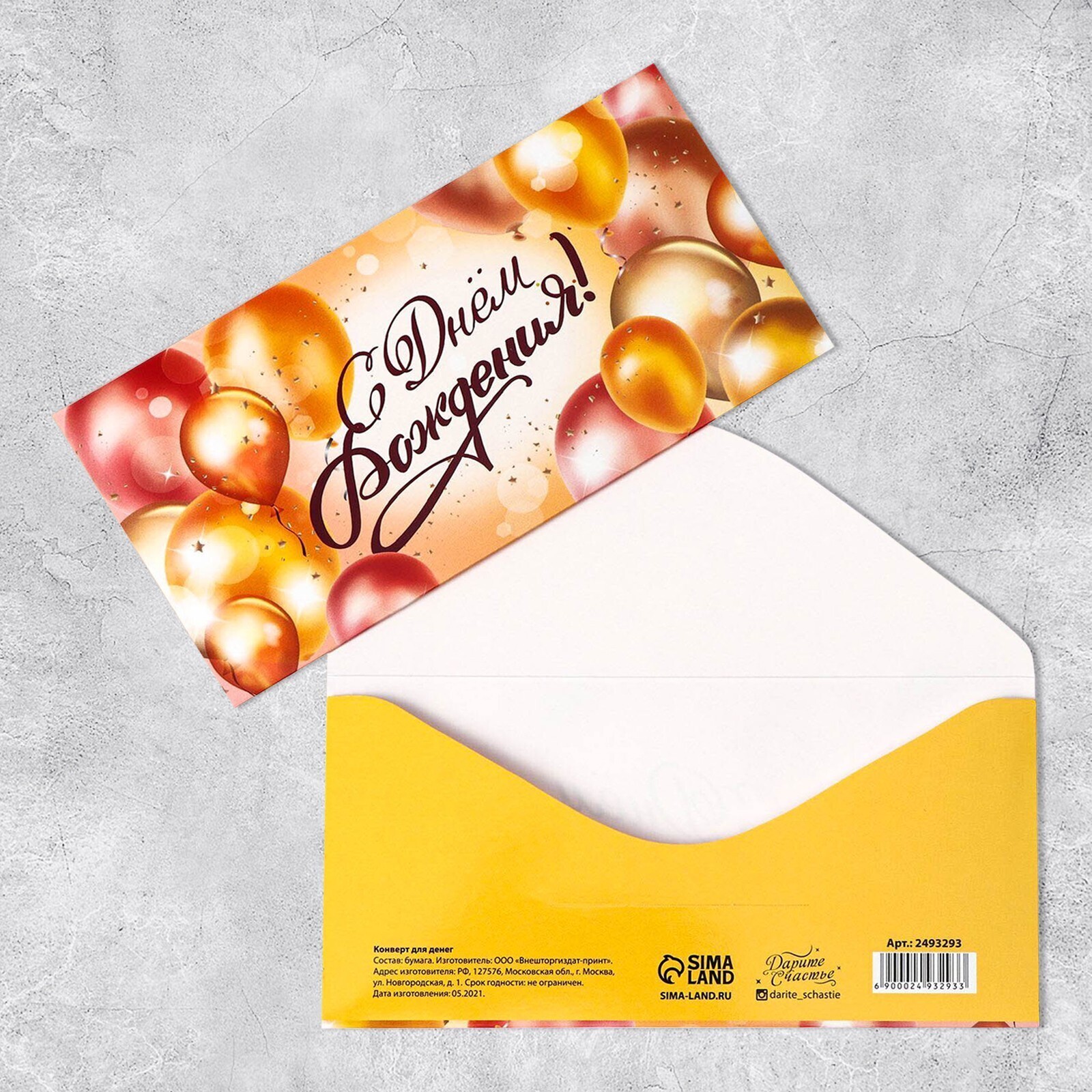 Конверт для денег «С Днём рождения», золотые шары, 16,5 х 8 см
