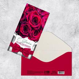 Конверт для денег «С Днём рождения!», красные розы и бант, 16.5 × 8 см