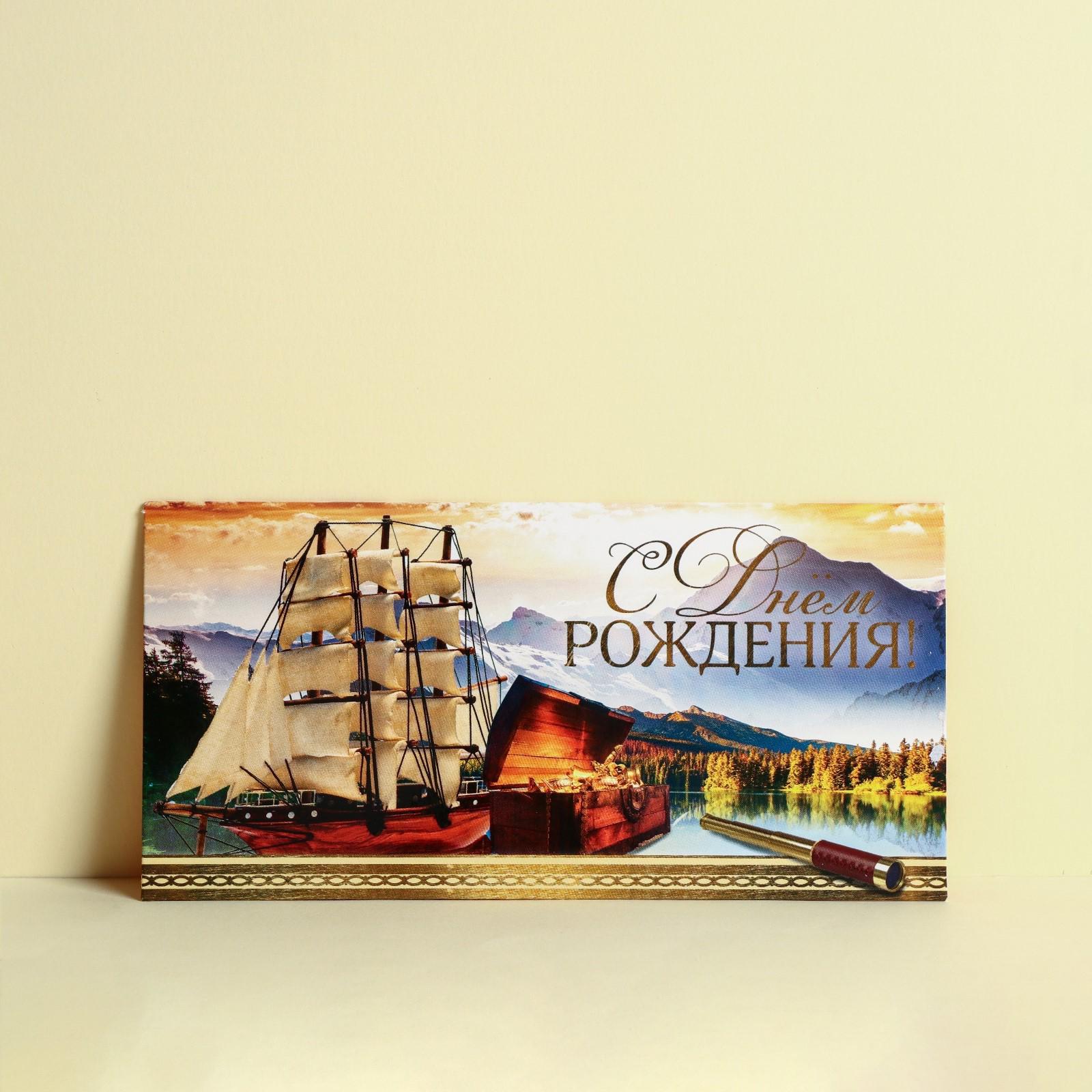 Конверт для денег «С Днём рождения!» корабль, 16.5 × 8 см