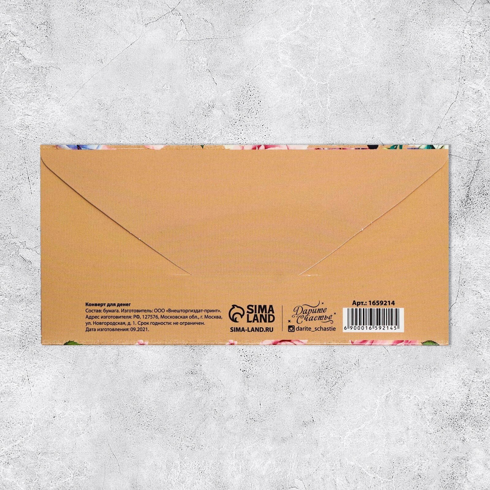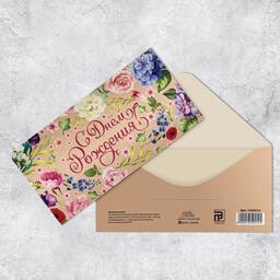 Конверт для денег "Поздравляю", цветы на крафте, 16,5 х 8 см