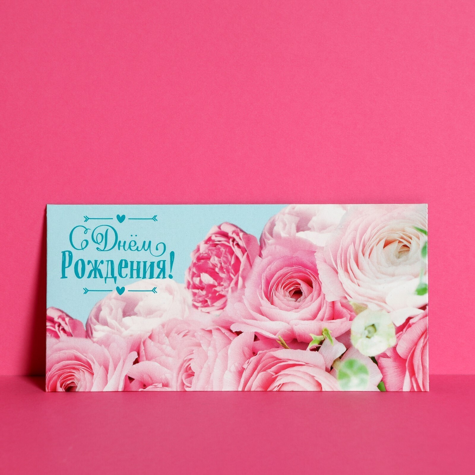 Конверт для денег «С Днём рождения!» розы, 16.5 × 8 см
