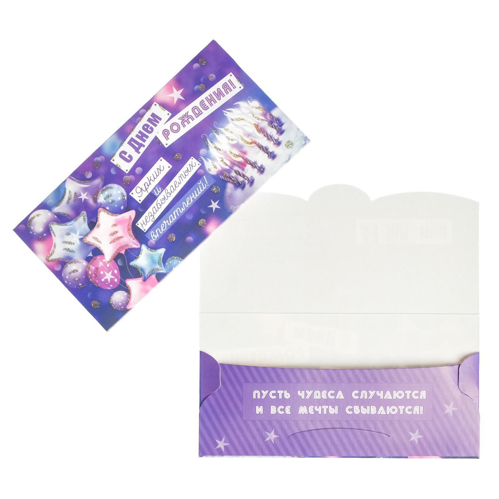 Конверт для денег "С Днем Рождения!" глиттер, торт со свечами