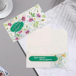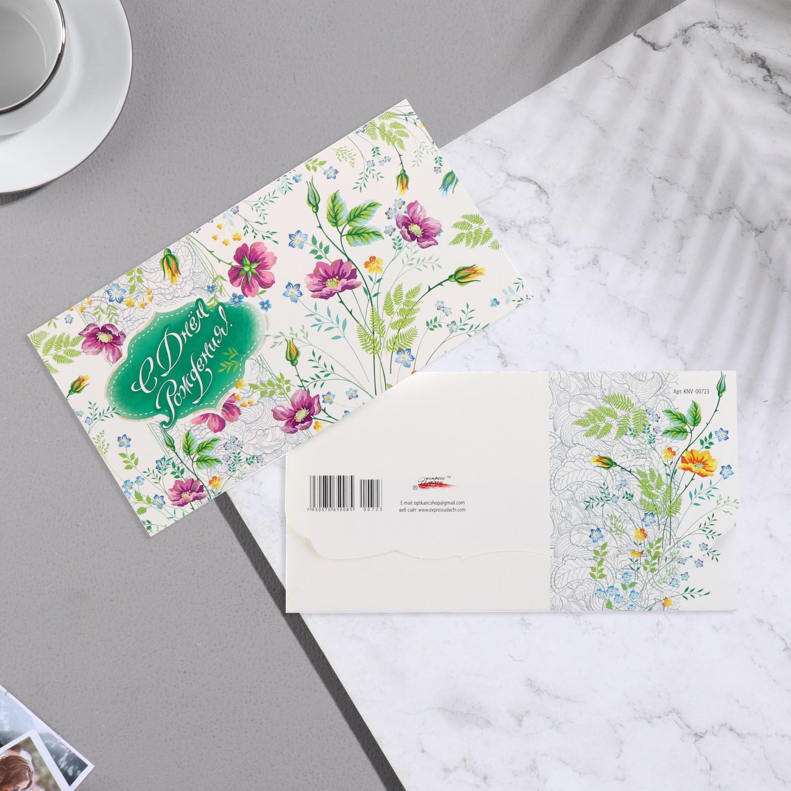 Конверт для денег "С Днем Рождения!" цветы, белый фон