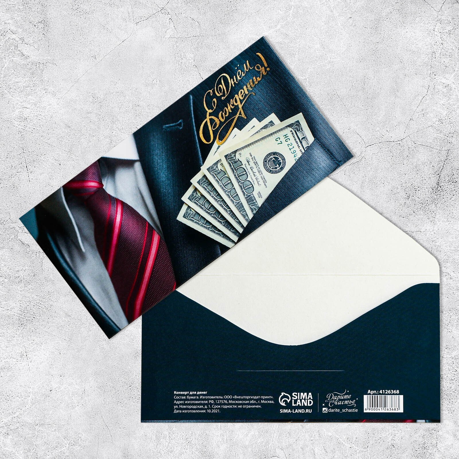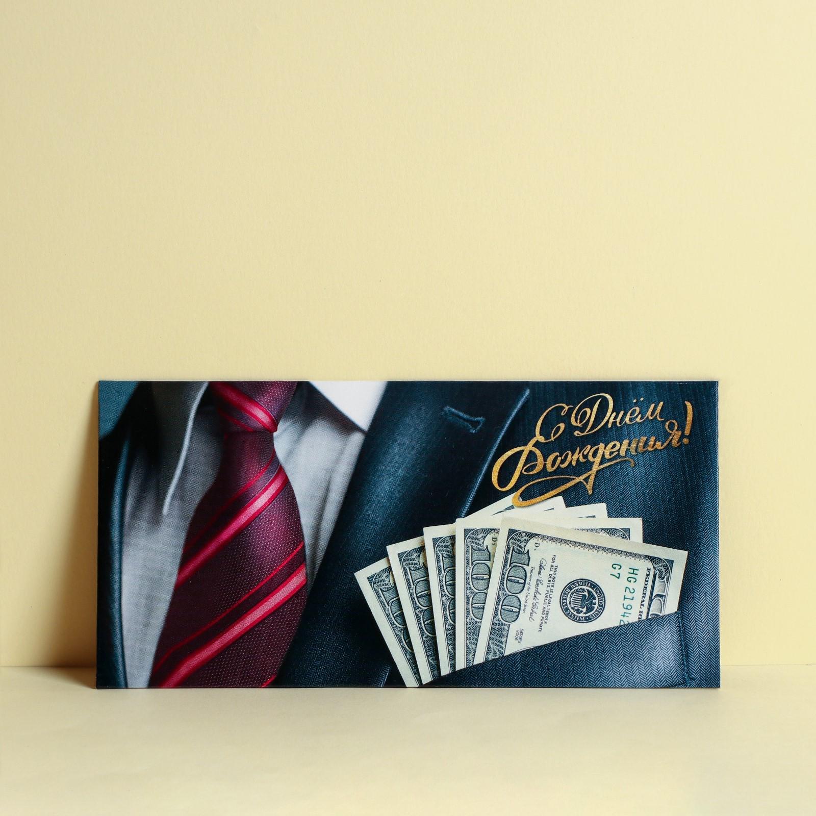 Конверт для денег «С Днём рождения!», купюры в кармане, 16.5 × 8 см