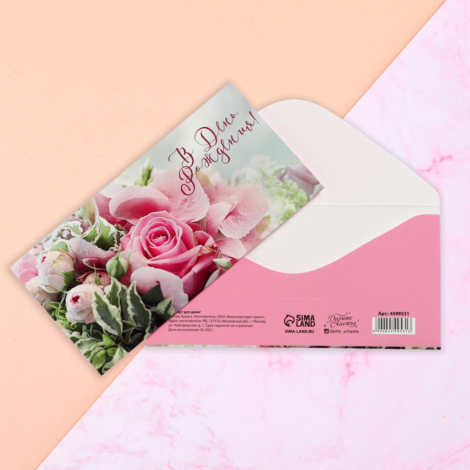 Конверт для денег «В День Рождения!»,букет, 16,5 х 8 см