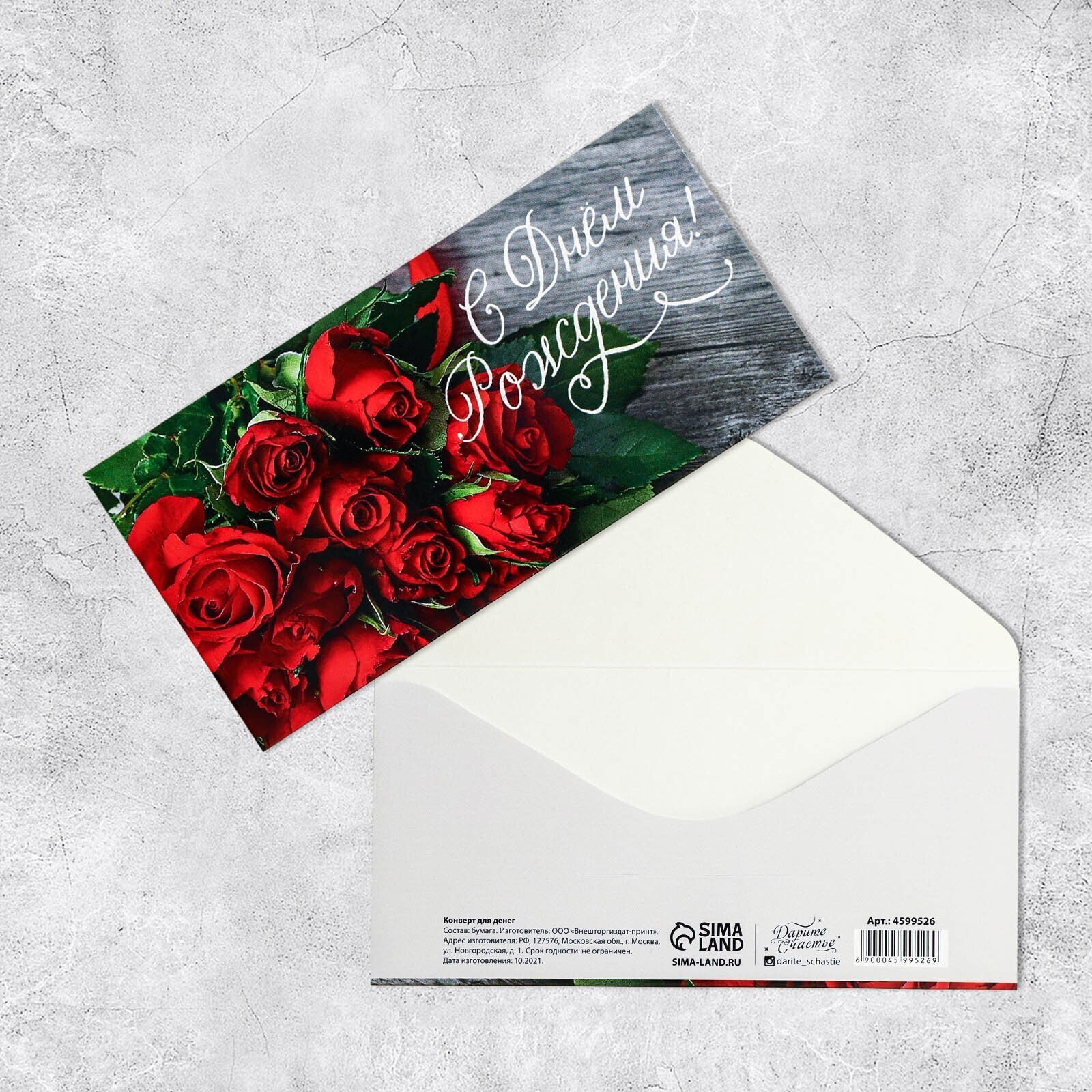 Конверт для денег «С Днем Рождения!», розы, 16,5 х 8 см