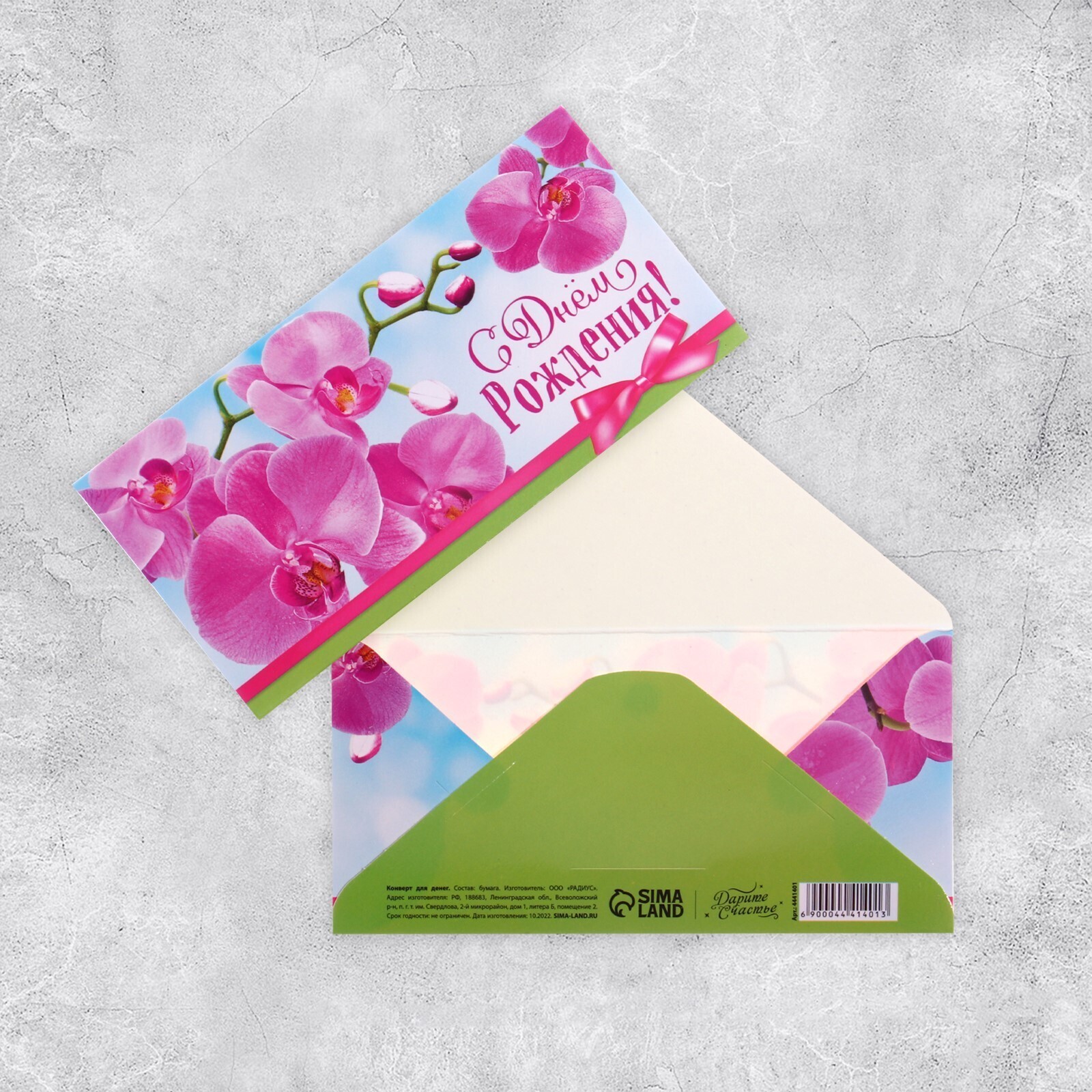 Конверт для денег «С Днём рождения!» орхидеи, 16.5 × 8 см