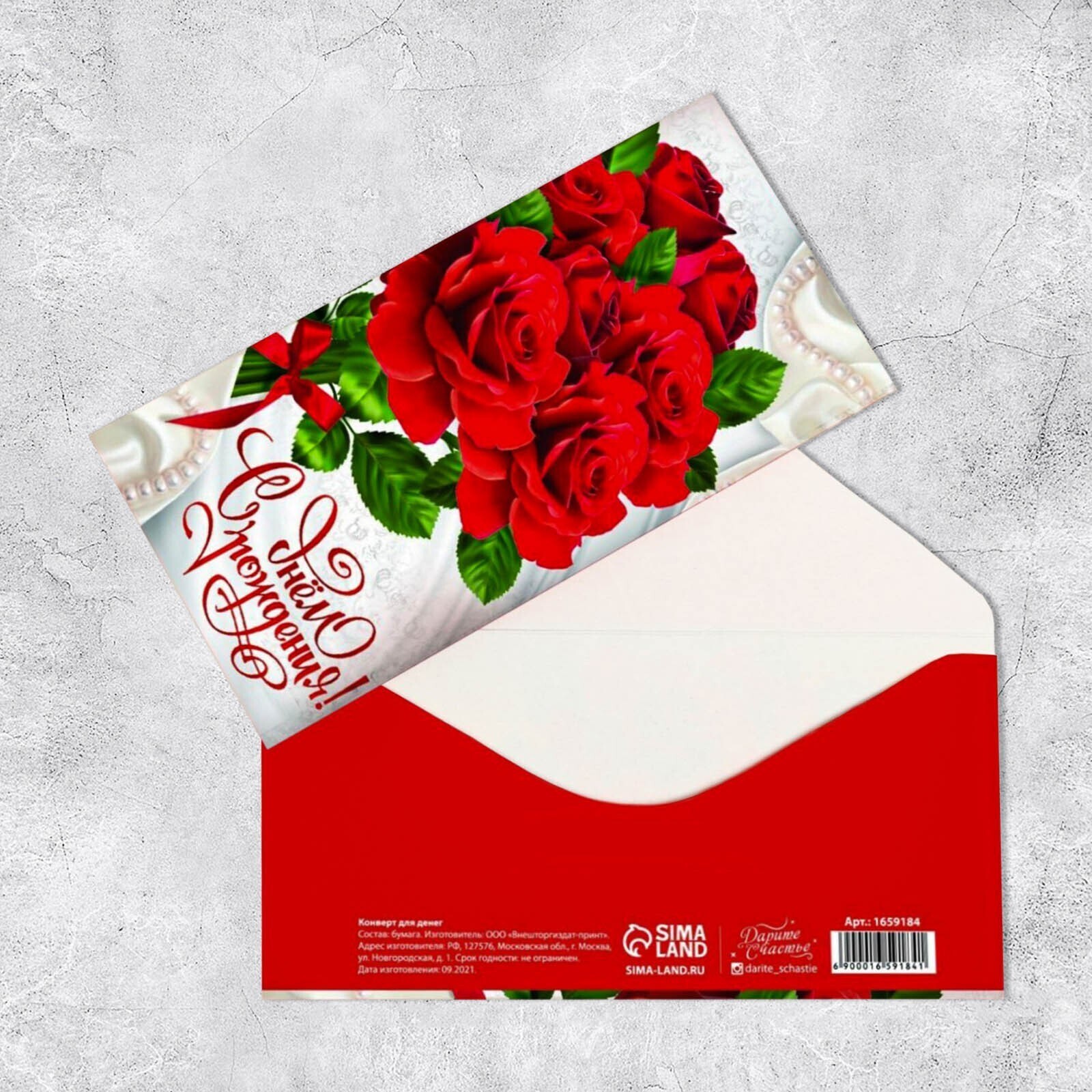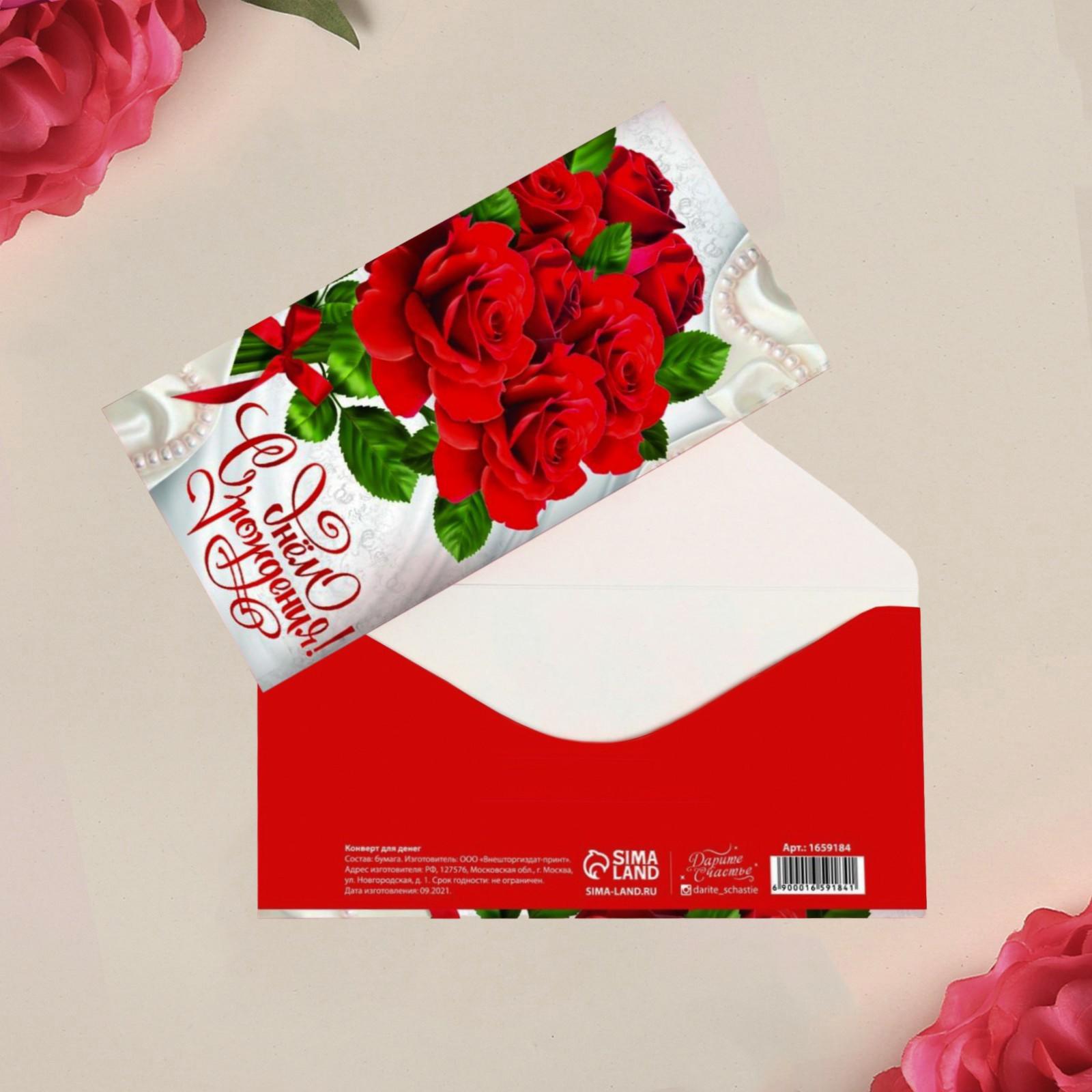 Конверт для денег «С Днём Рождения», жемчуг и розы, 16,5 × 8 см