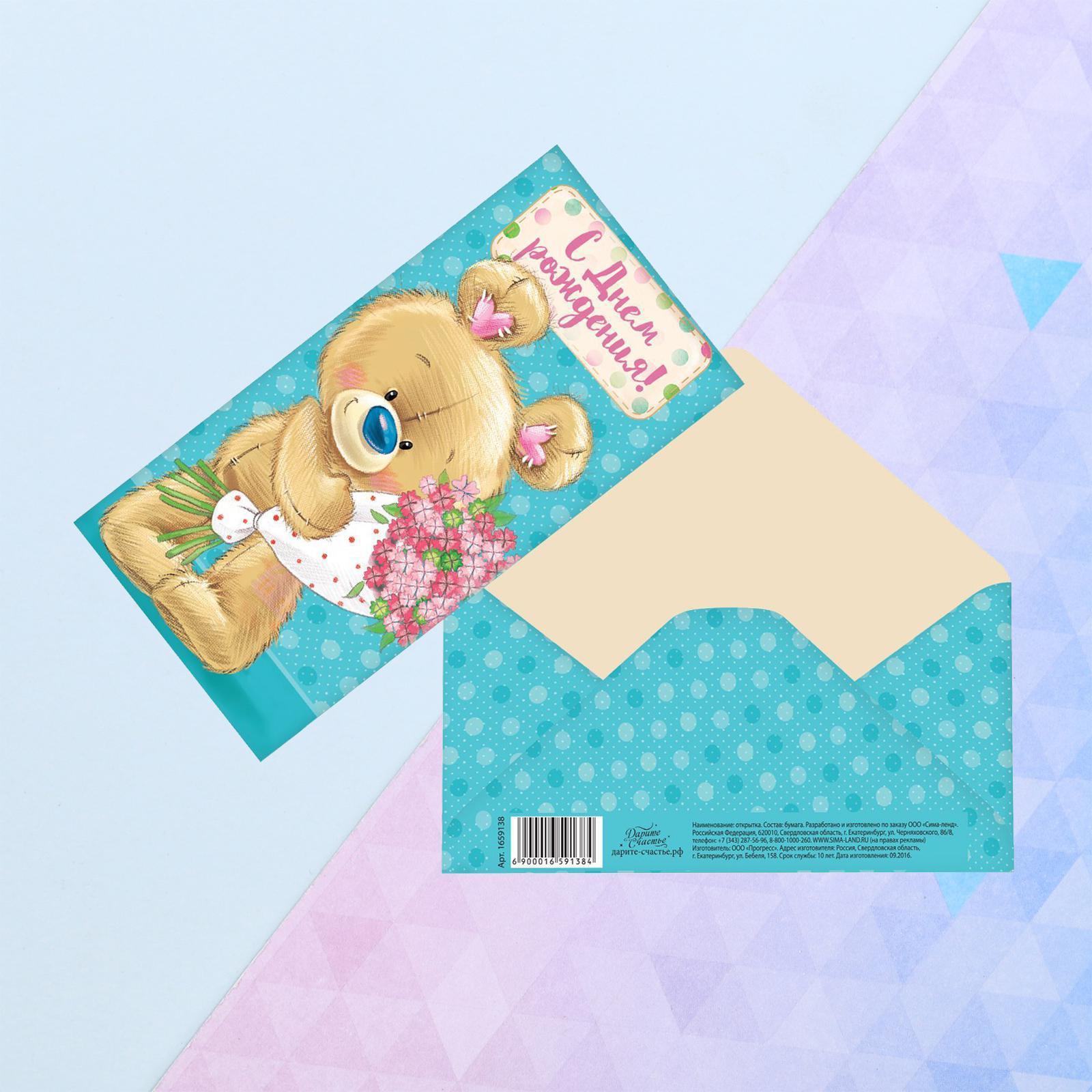 Конверт для денег «С Днем Рождения», мишка, 16,5 × 8 см