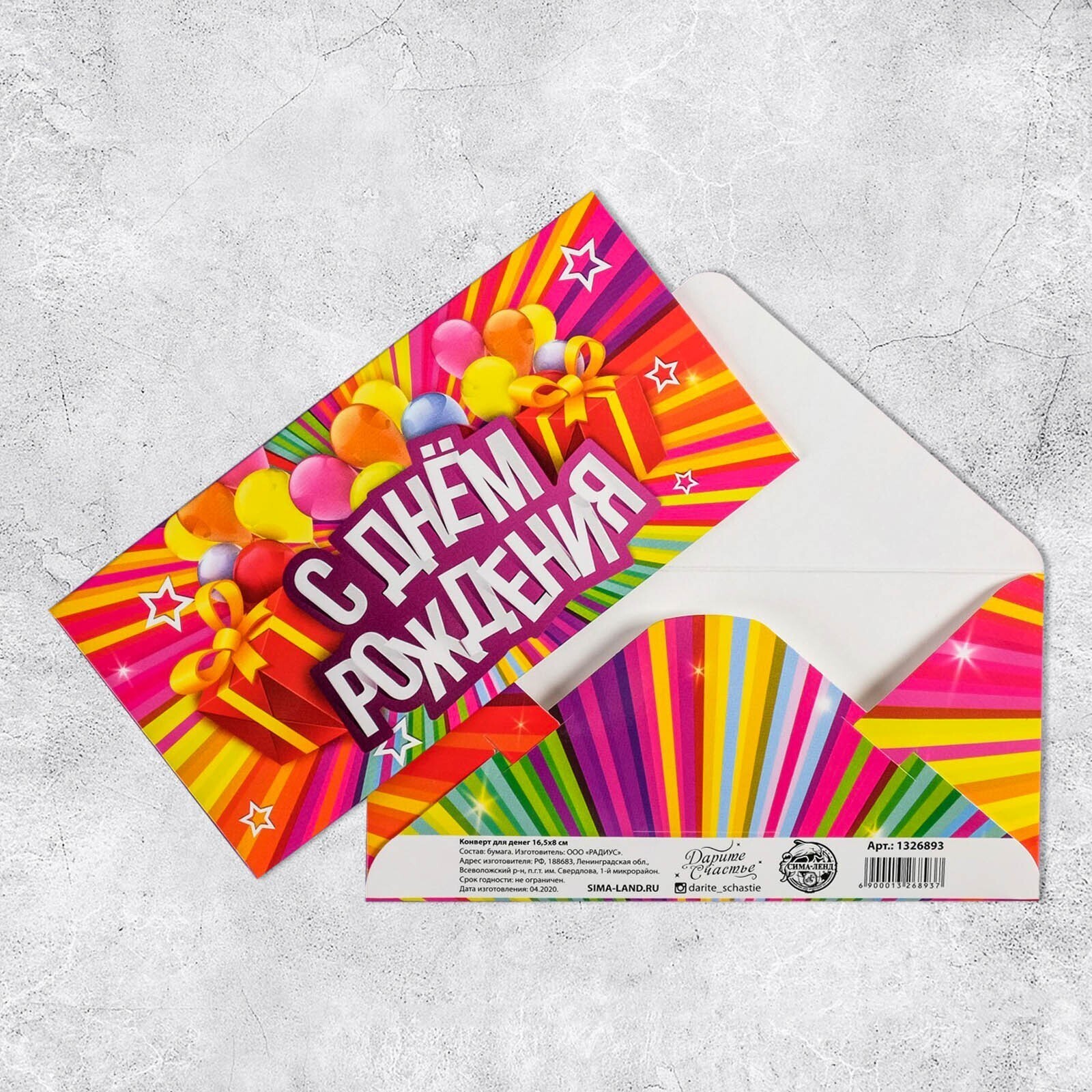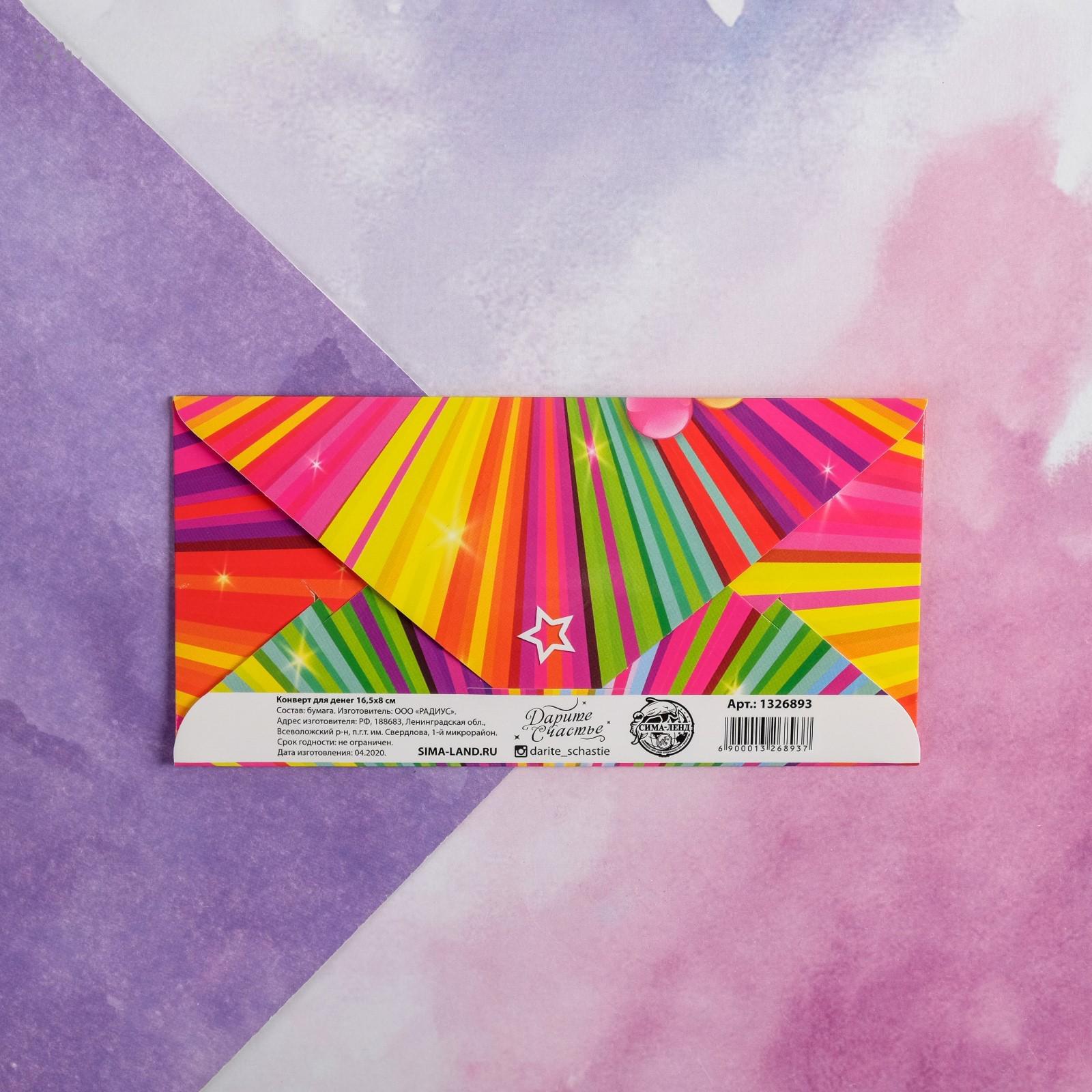 Конверт для денег «С Днём Рождения», яркие полосы, 16,5 × 8 см
