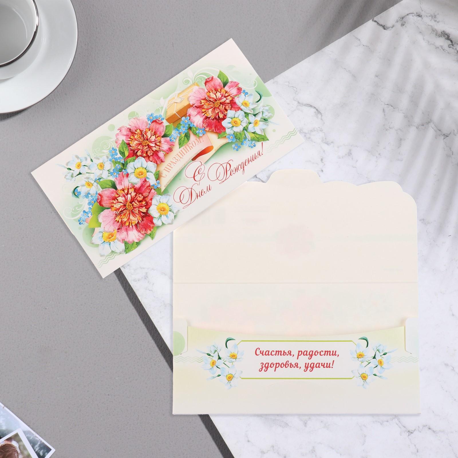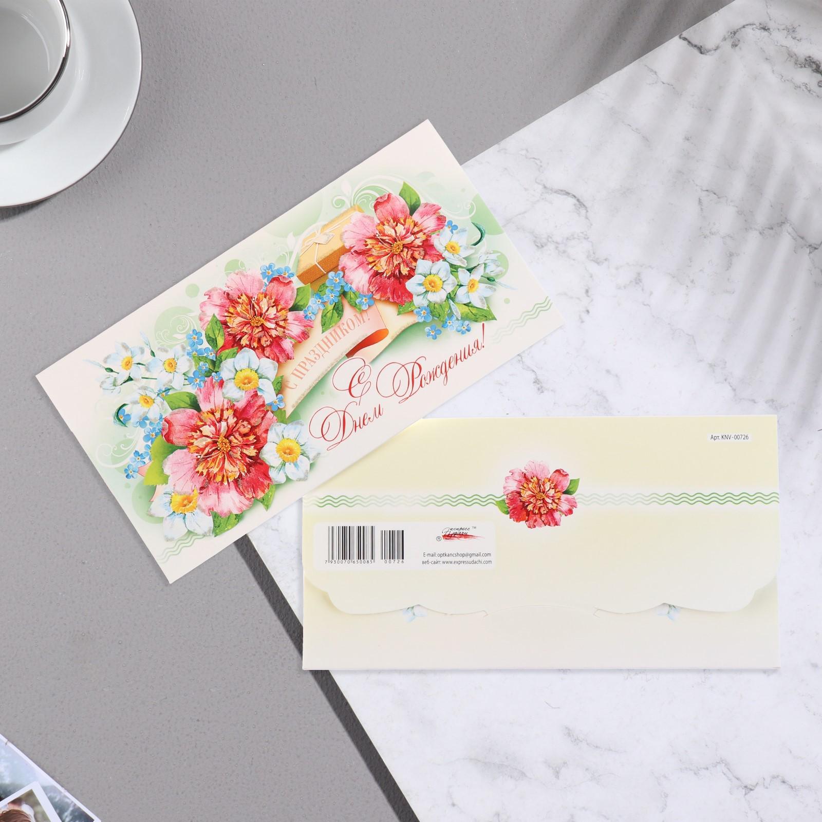 Конверт для денег "С Днем Рождения!" цветы, подарок