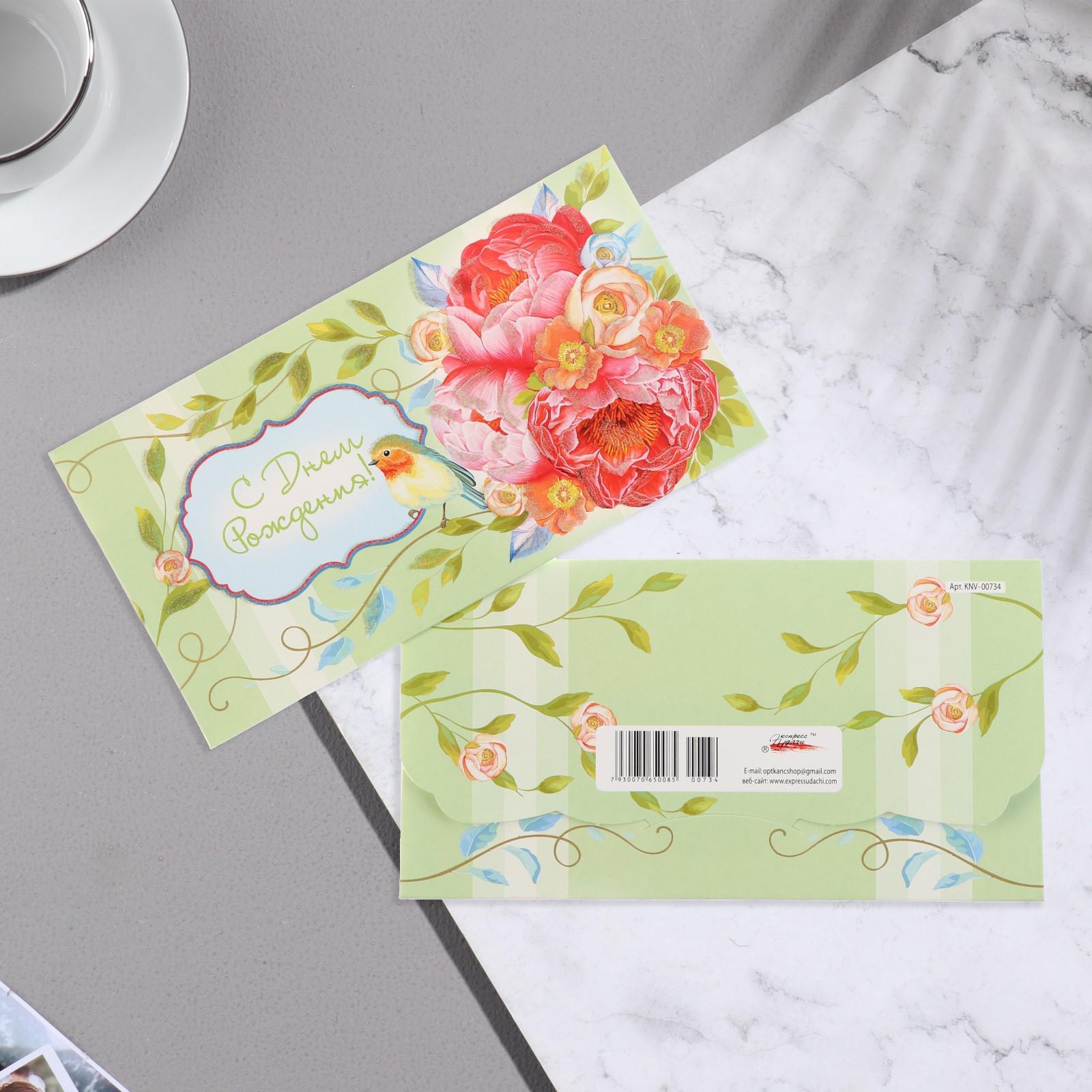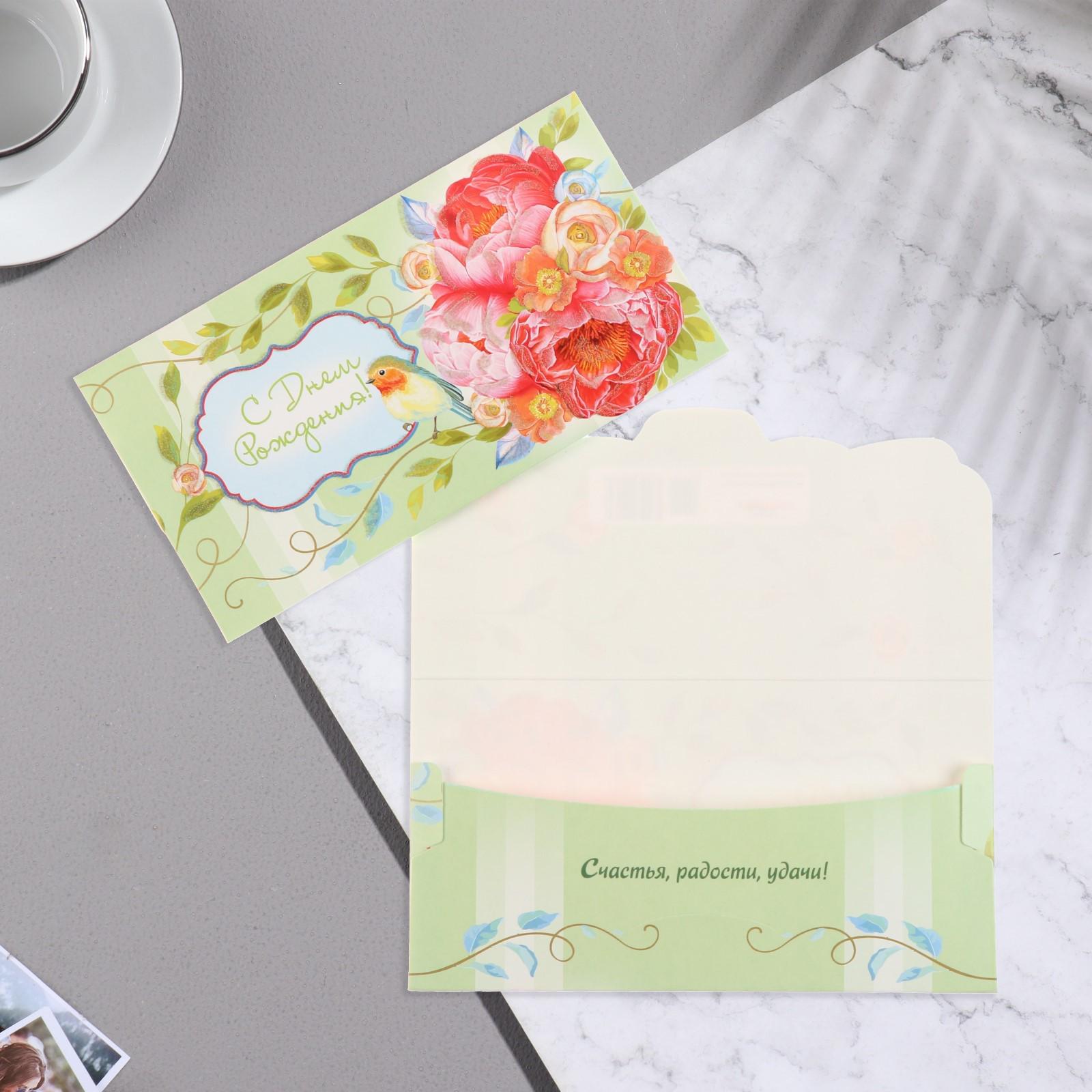 Конверт для денег "С Днем Рождения!" цветы, птица