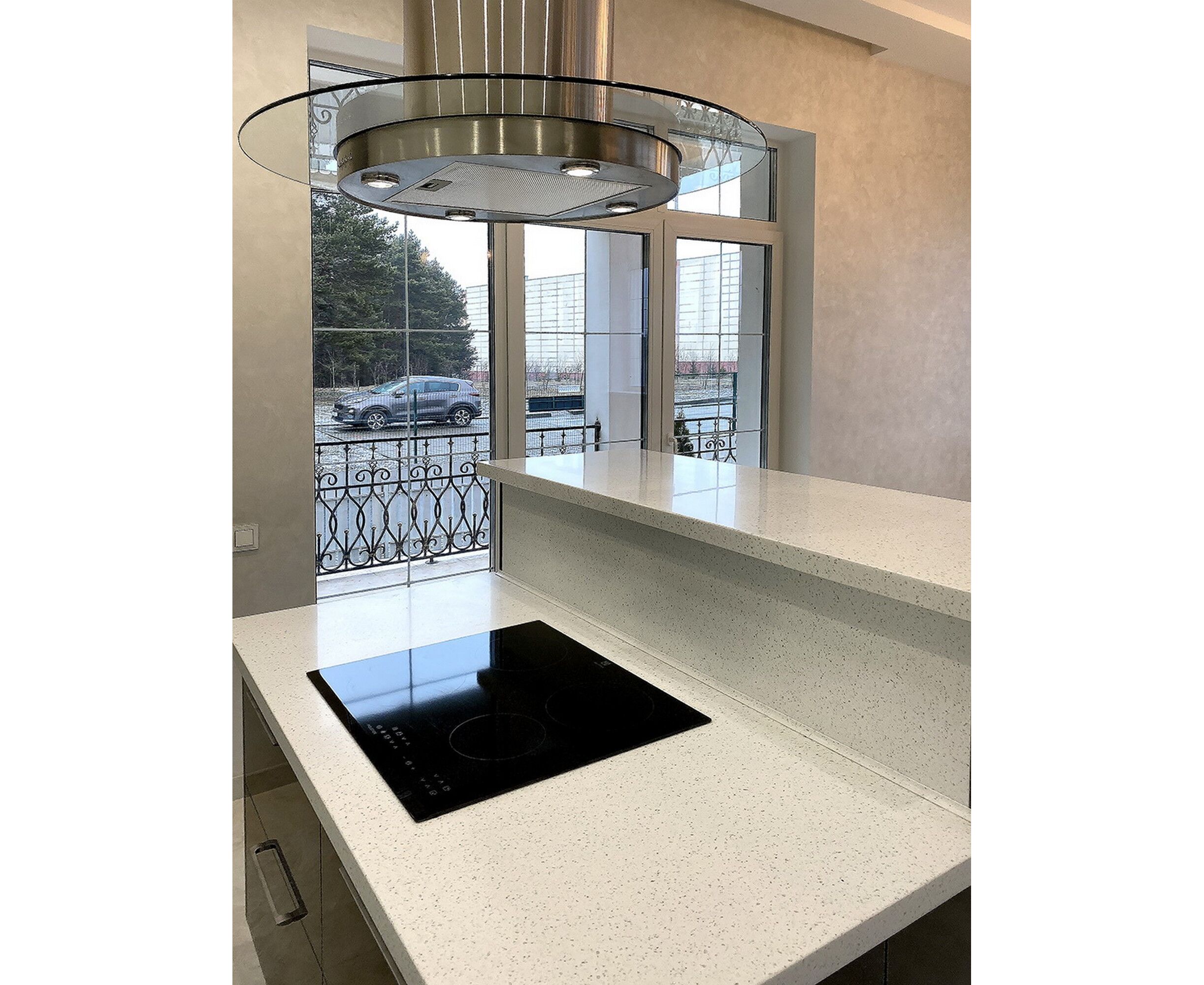 Стильная вытяжка благодаря необычному дизайну и техническим характеристикам идеально впишется в интерьер любой современной кухни, даже островной. Эта модель работает в двух режимах: отвода (при подключении вытяжки к системе вентиляции) и рециркуляции (при использовании сменного угольного фильтра в вытяжке)