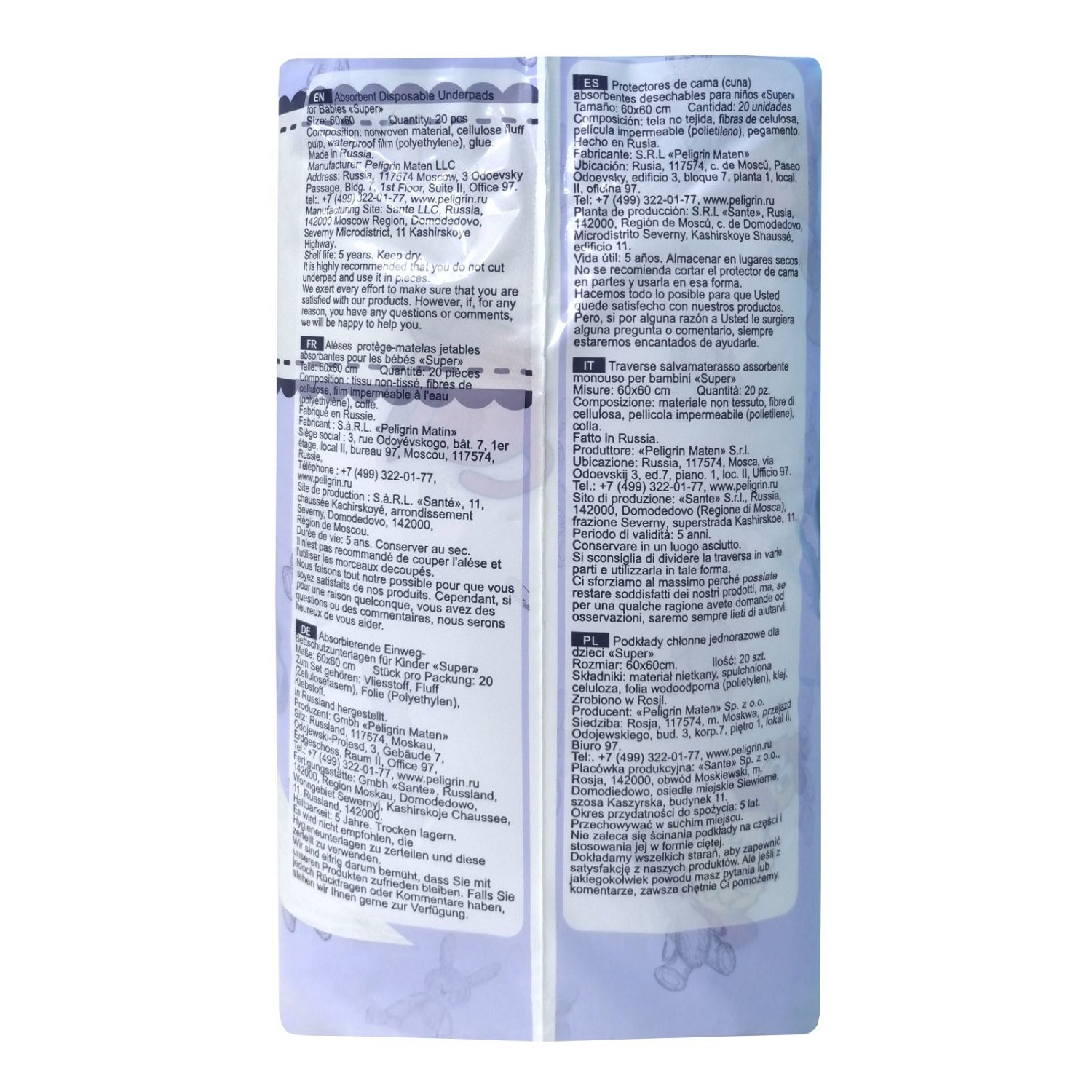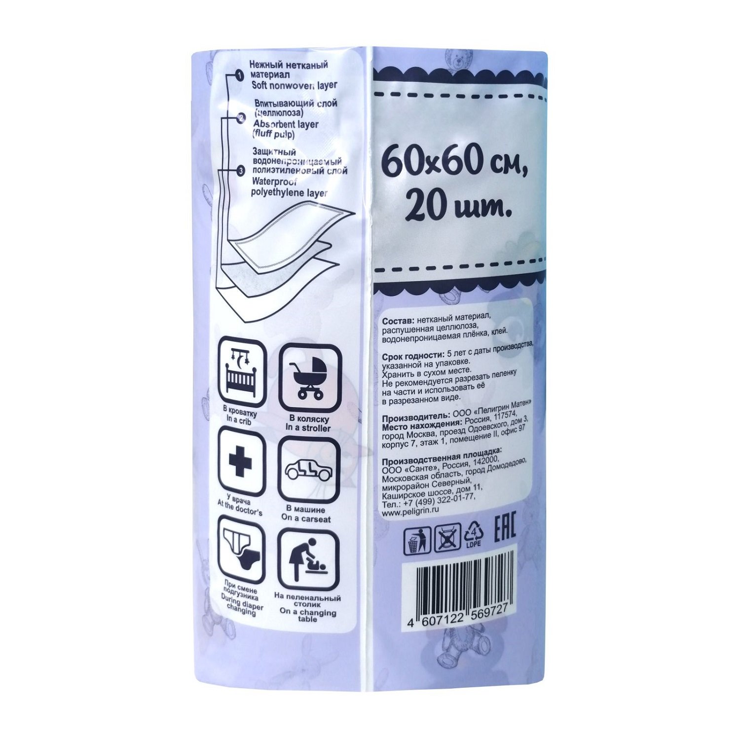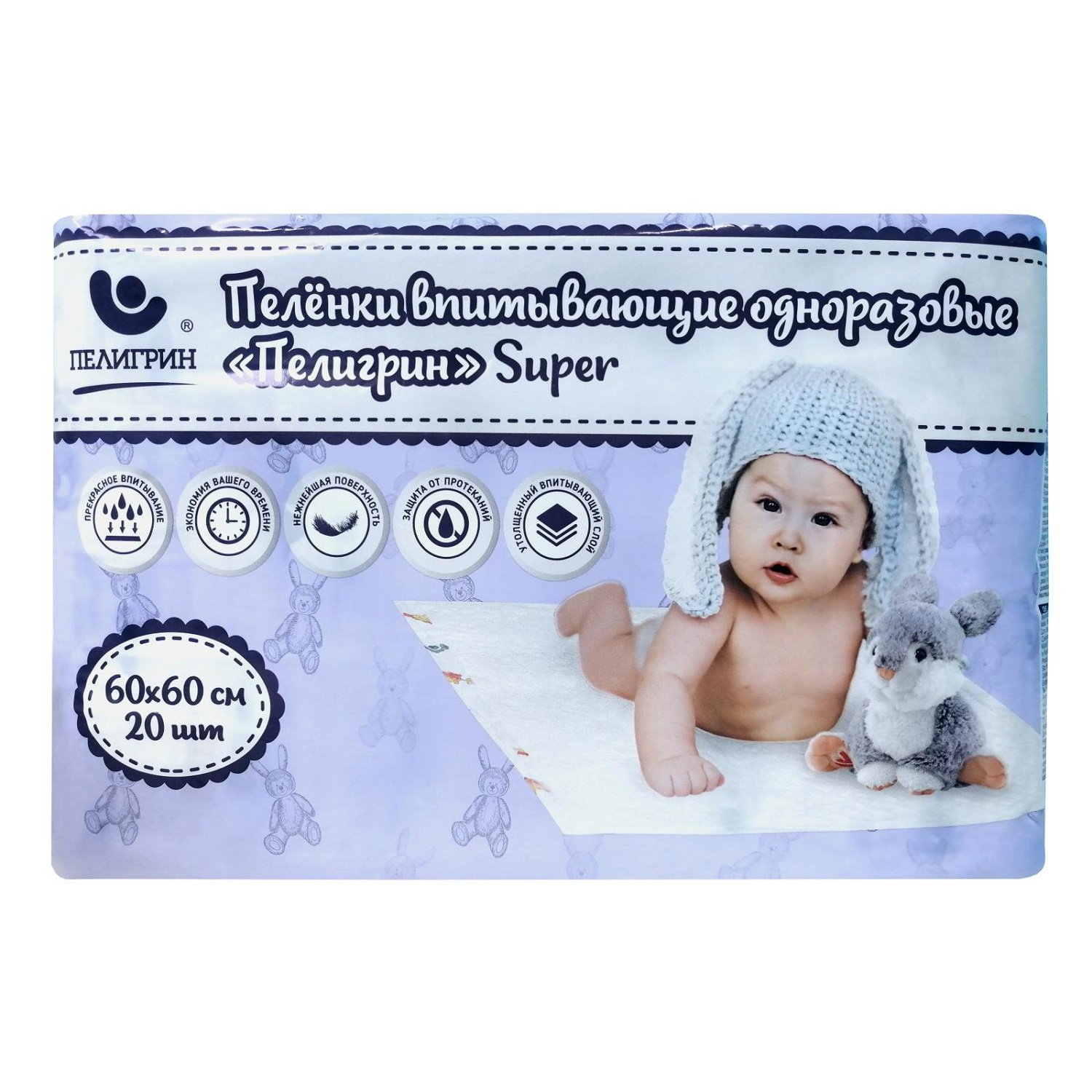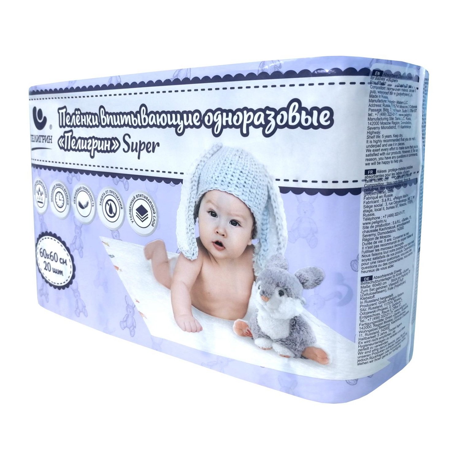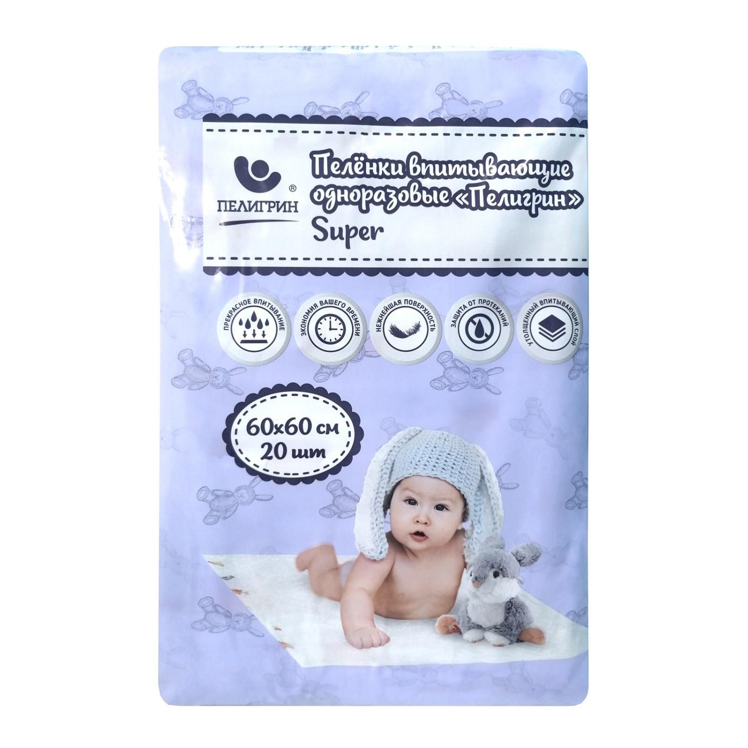 Пеленки одноразовые Пелигрин 60х60 см 20 шт. Super S60/20