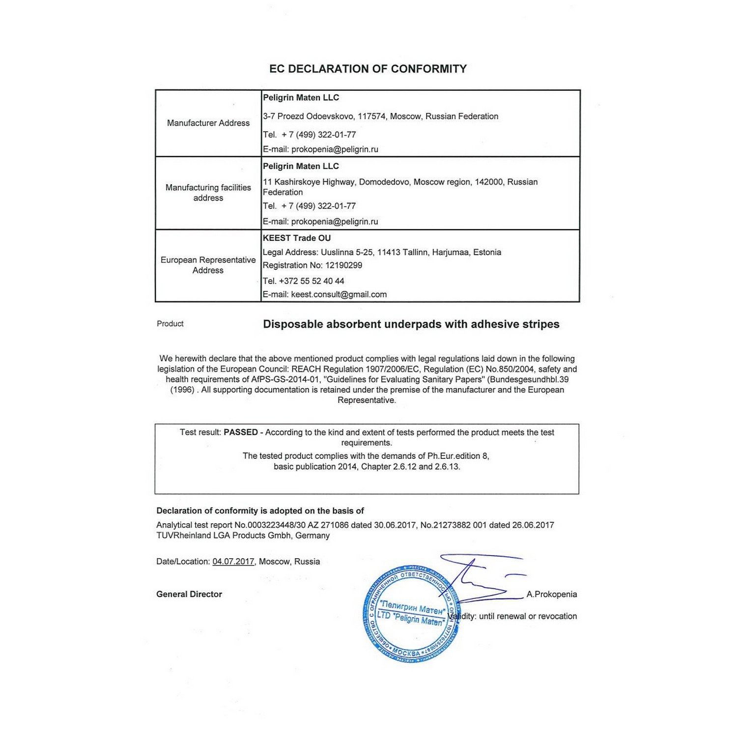 Пеленки одноразовые Пелигрин 60х90 см 30 шт Classic УП90/30 ЕАС