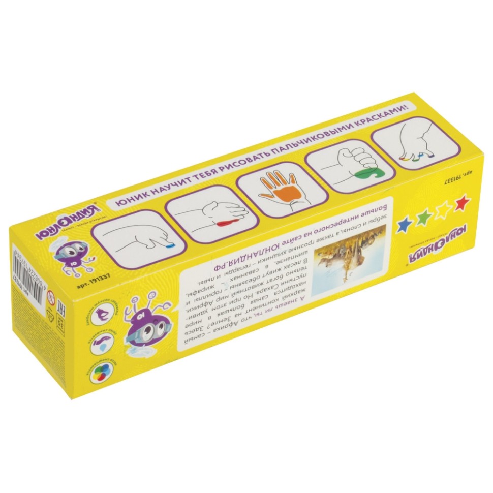 Нарушена упаковка! <205242> Краски пальчиковые ЮНЛАНДИЯ "САФАРИ", 4 цвета по 35 мл, в баночках, ВЫСШЕЕ КАЧЕСТВО (191337)