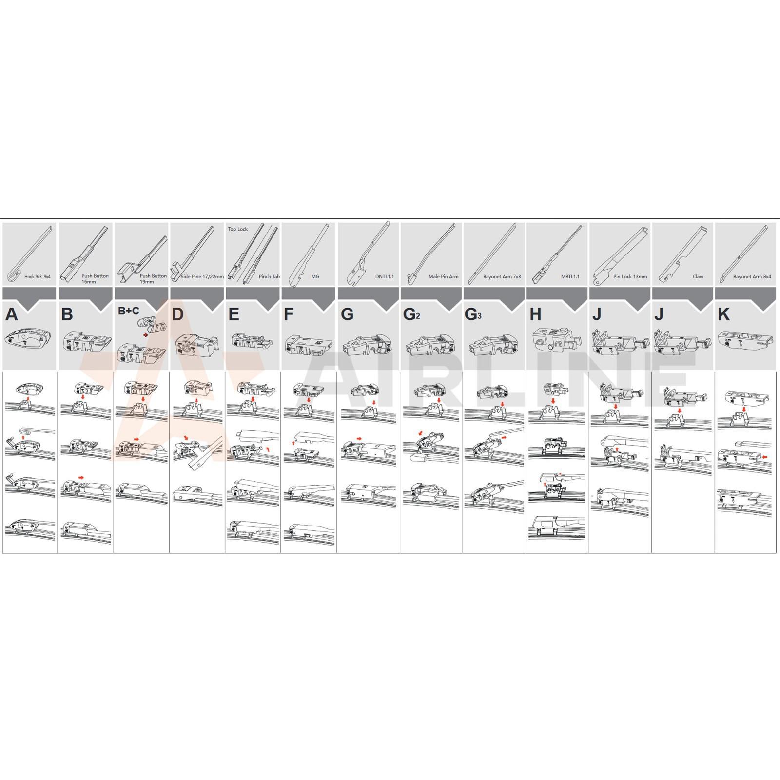 Щетка стеклоочистителя AIRLINE 15"/ 380 мм бескаркасная, 10 адаптеров