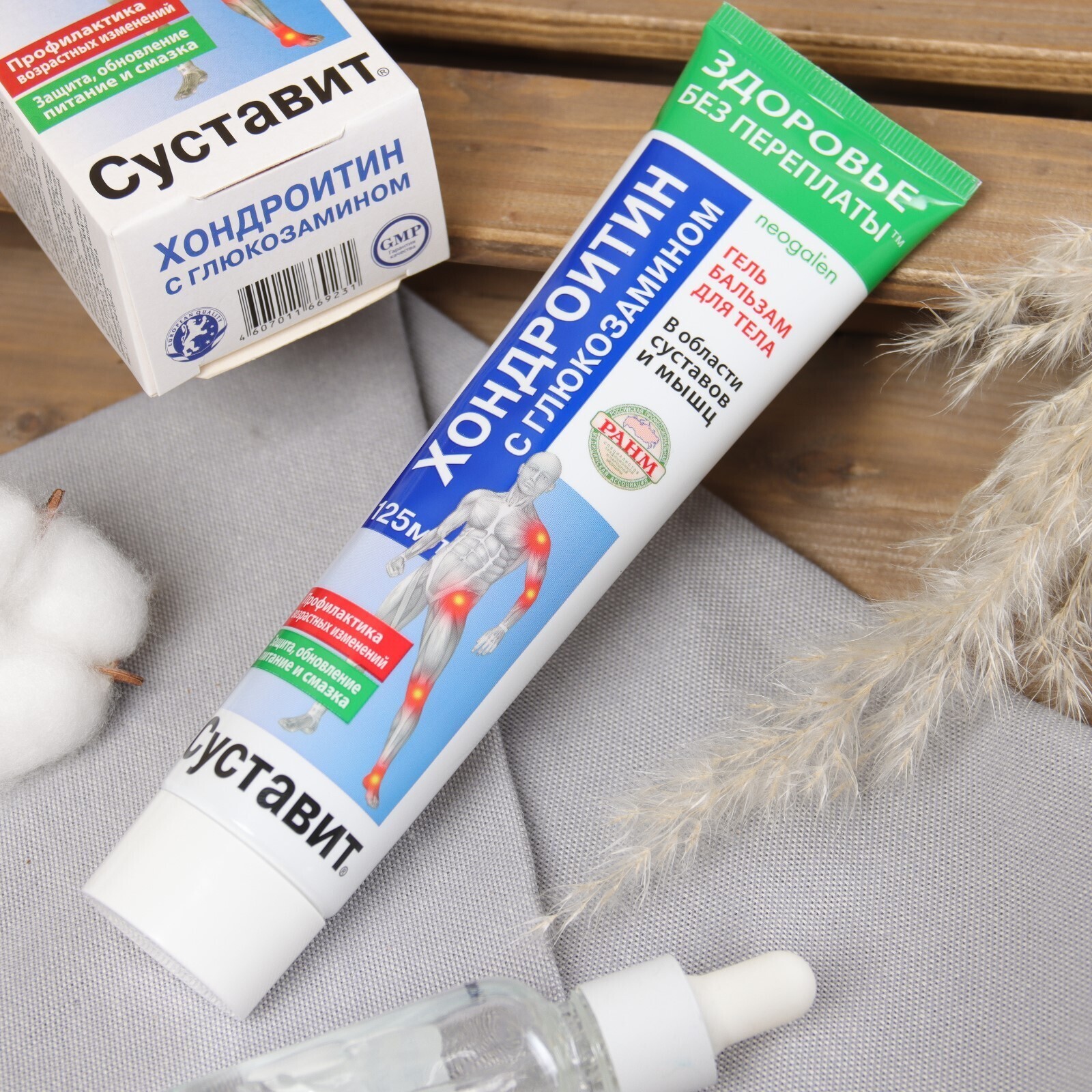 Гель-бальзам для тела Суставит Хондроитин высокоэффективный гиппоаллергийный натуральный состав, микрокапсульная структура, комплексное и многостороннее воздействие. Не является лекарственным средством.