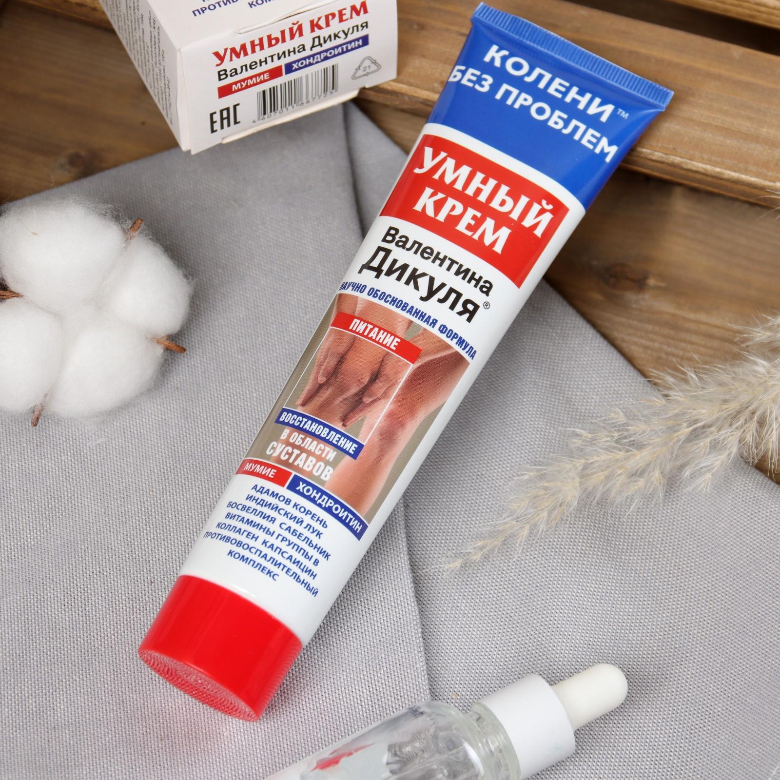Крем для тела "В.Дикуль Умный крем" с мумием и хондроитином – натуральное средство нового поколения, оказывающее избирательное направленное действие с учетом индивидуального характера функциональных нарушений.