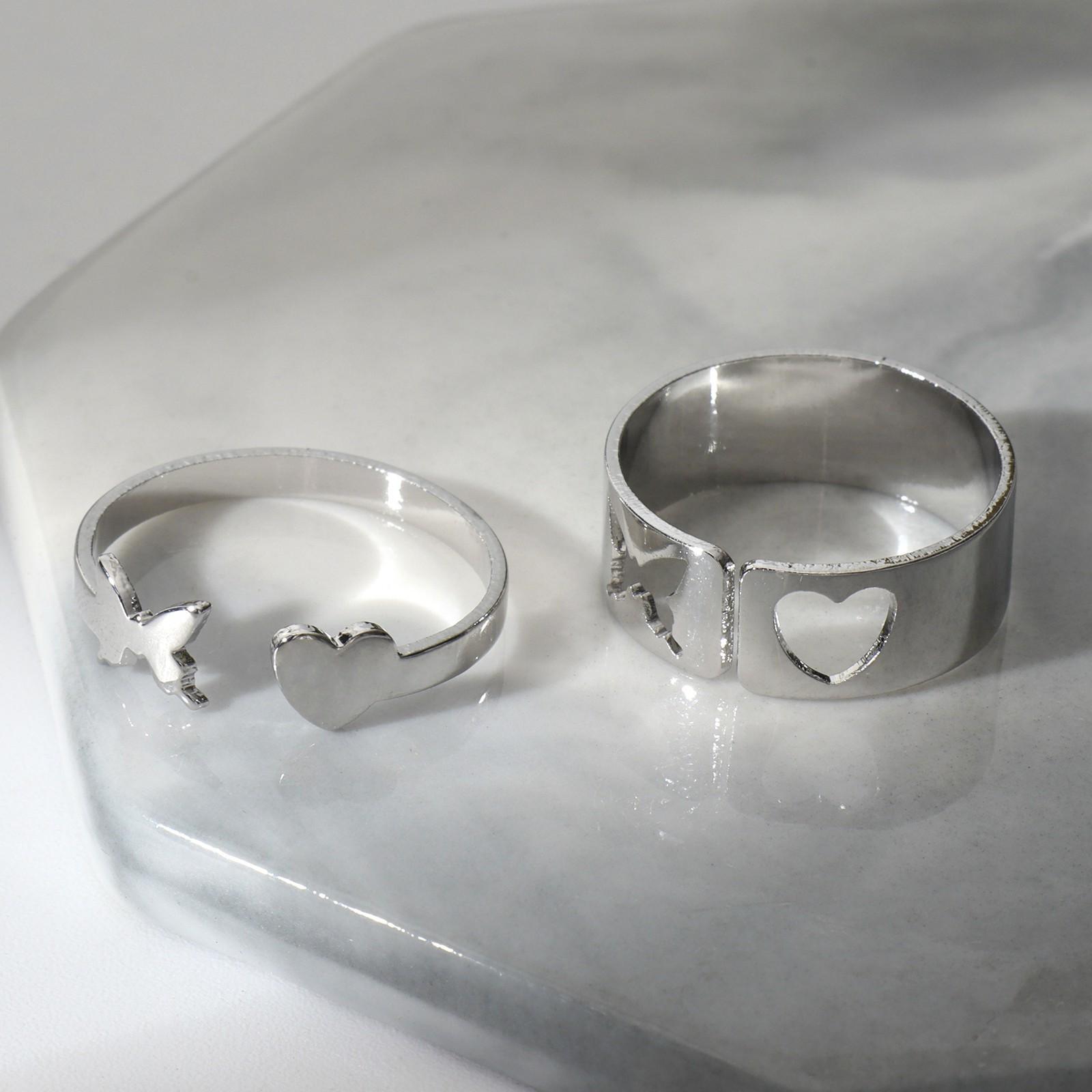Набор колец 2 штуки "Неразлучники"нежность, цвет серебро, безразмерное