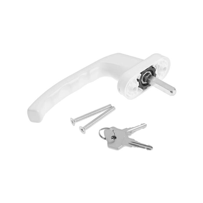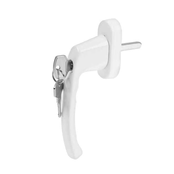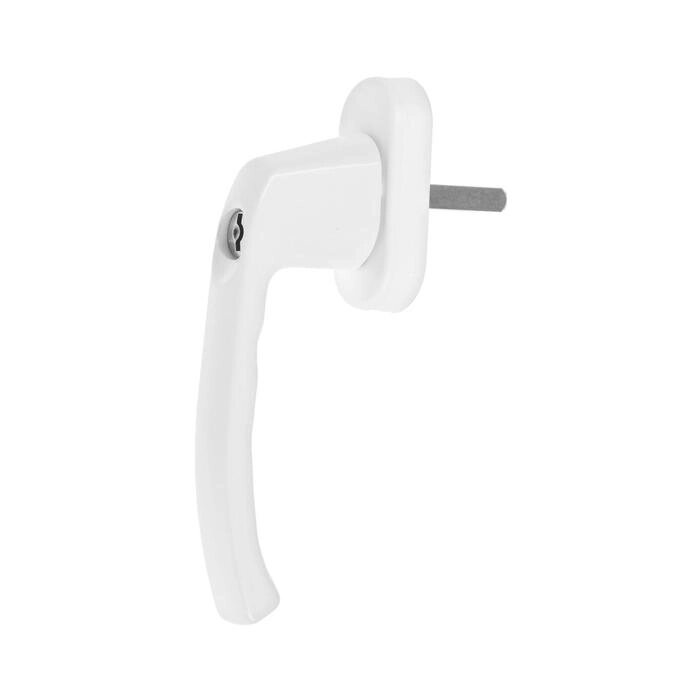 Ручка оконная, 38 мм, с замком, с кнопкой , металлическая, белая