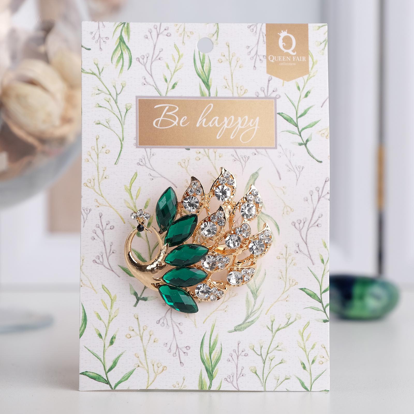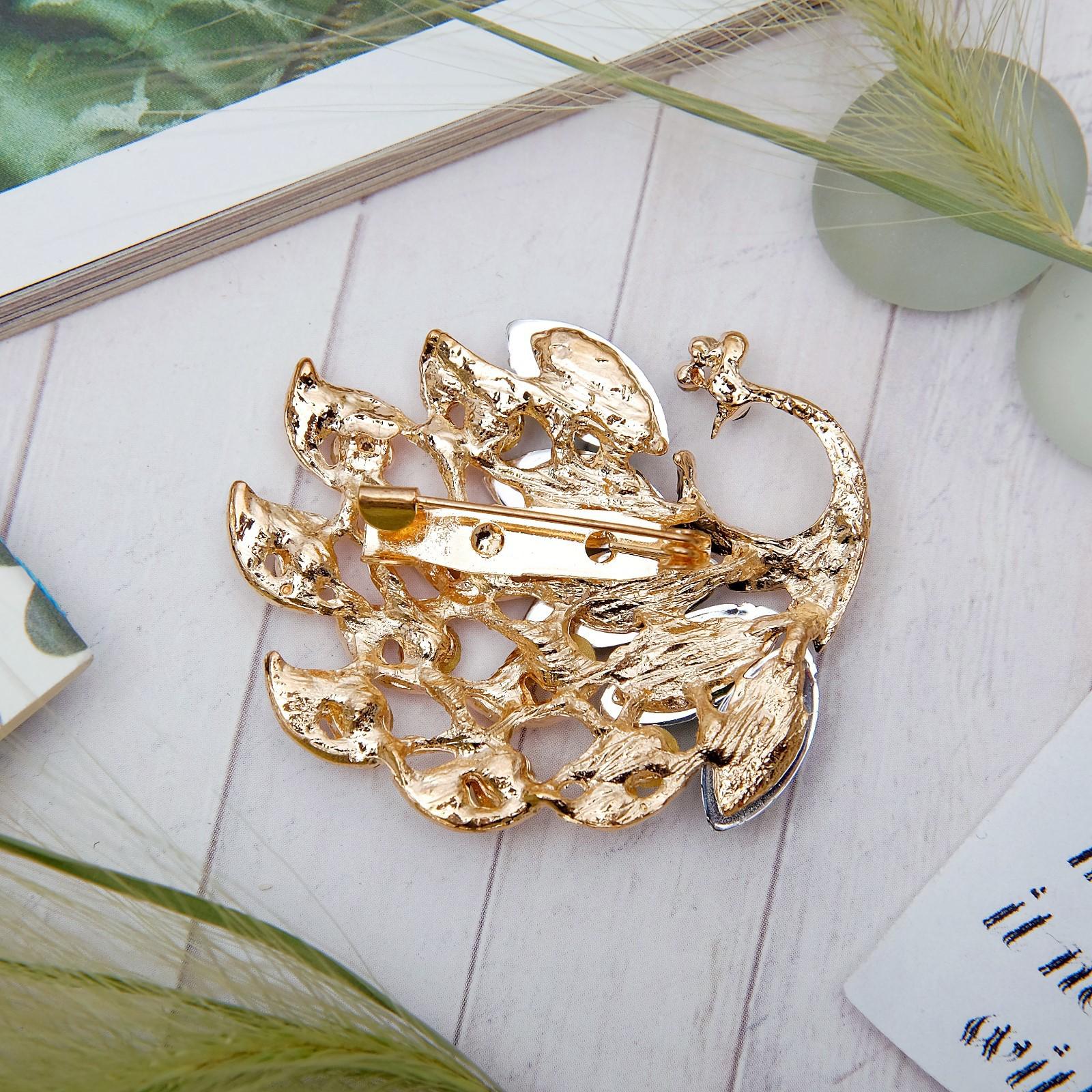 Брошь "Павлин", цвет бело-зелёный в золоте