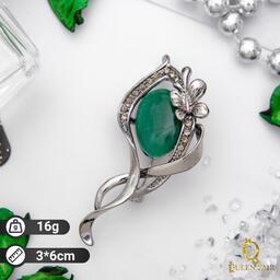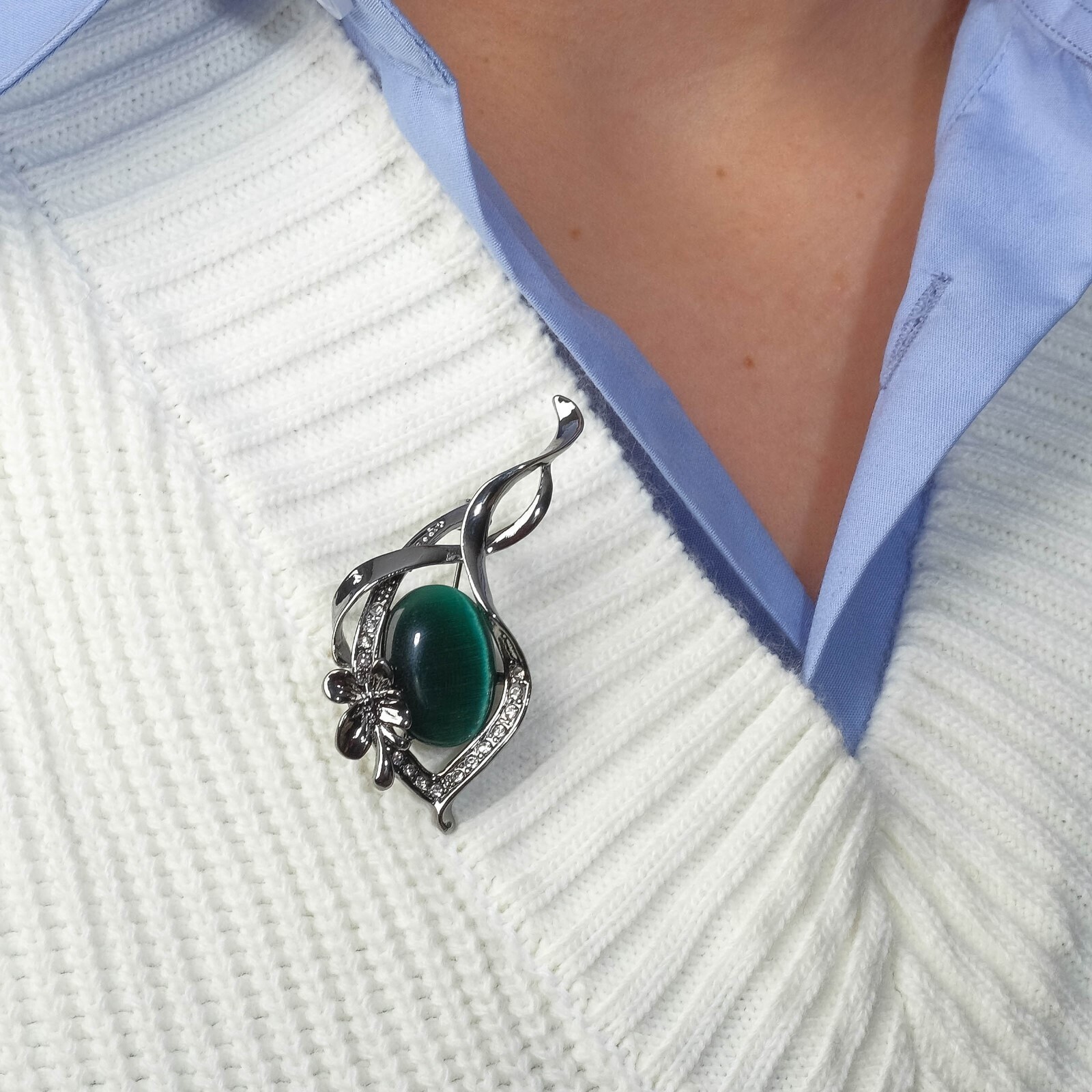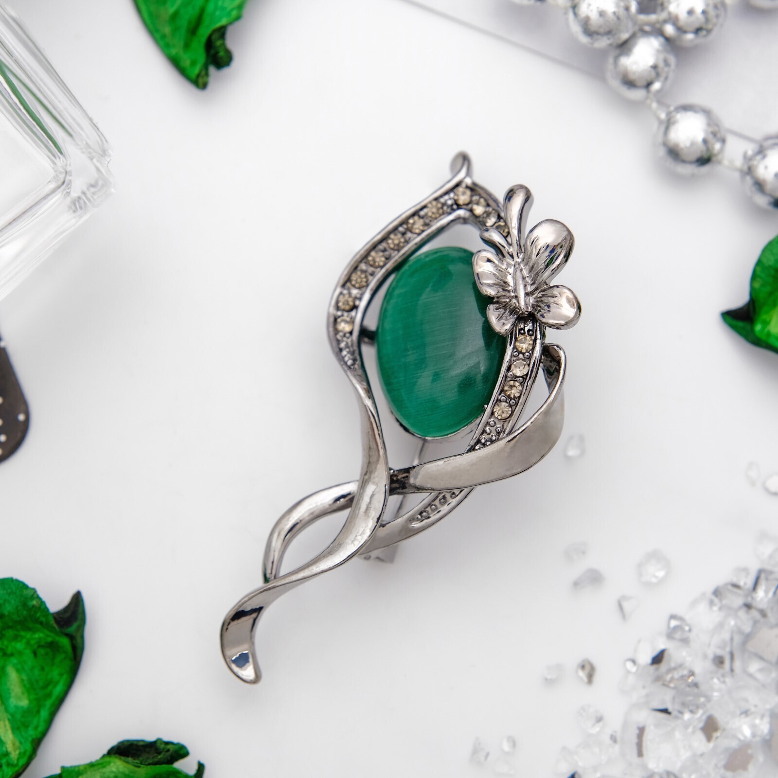 Брошь "Цветок" калла, цвет темно-зеленый в сером металле