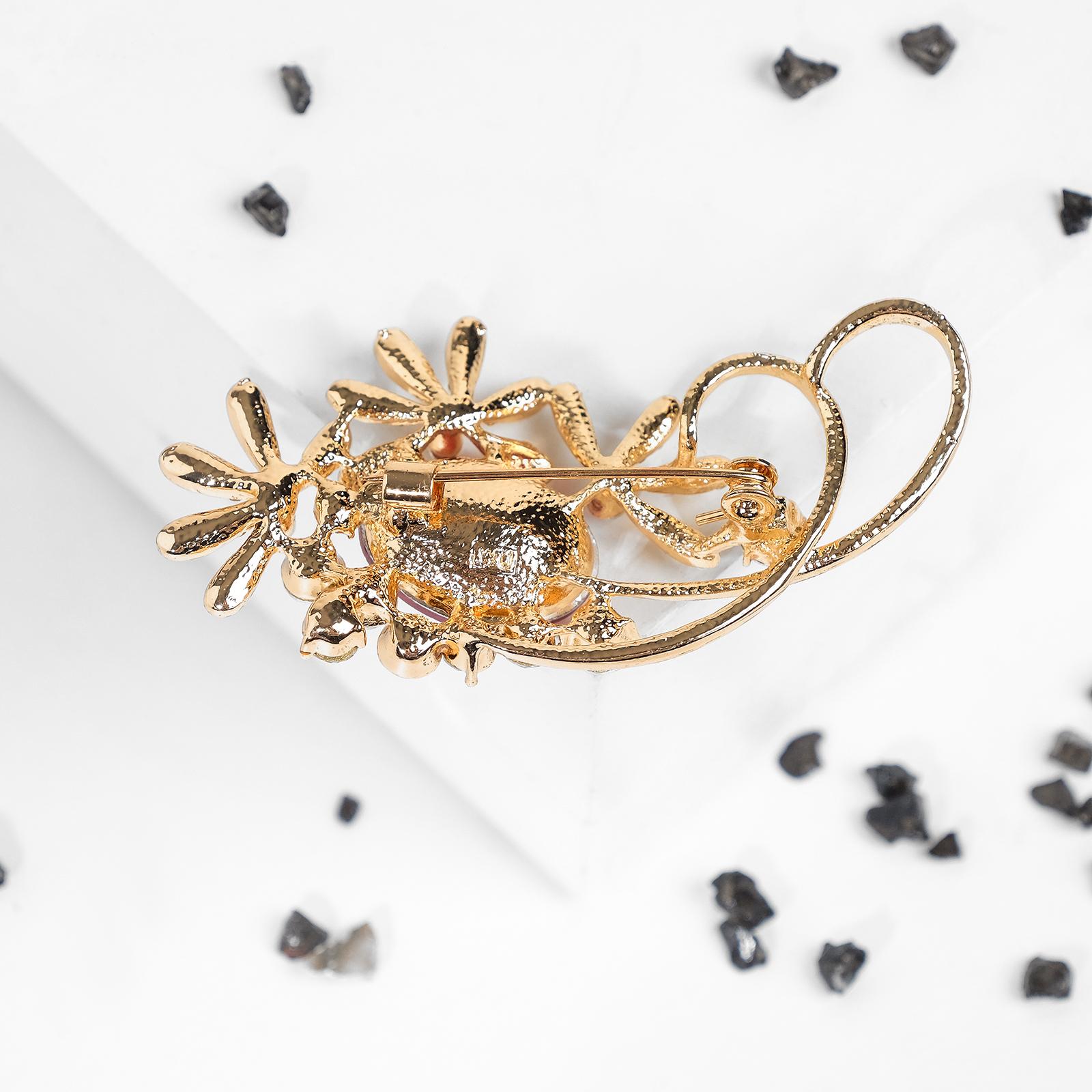 Брошь "Императрица" лакшери, цвет красно-белый в золоте