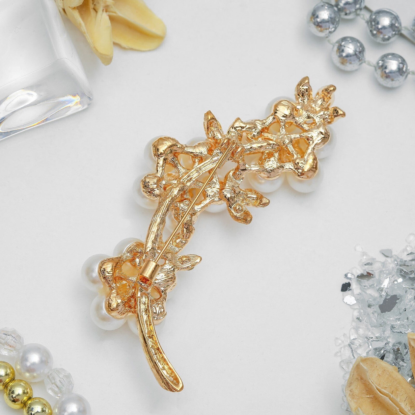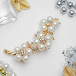 Брошь "Цветочное трио" жемчуг, цвет белый в золоте