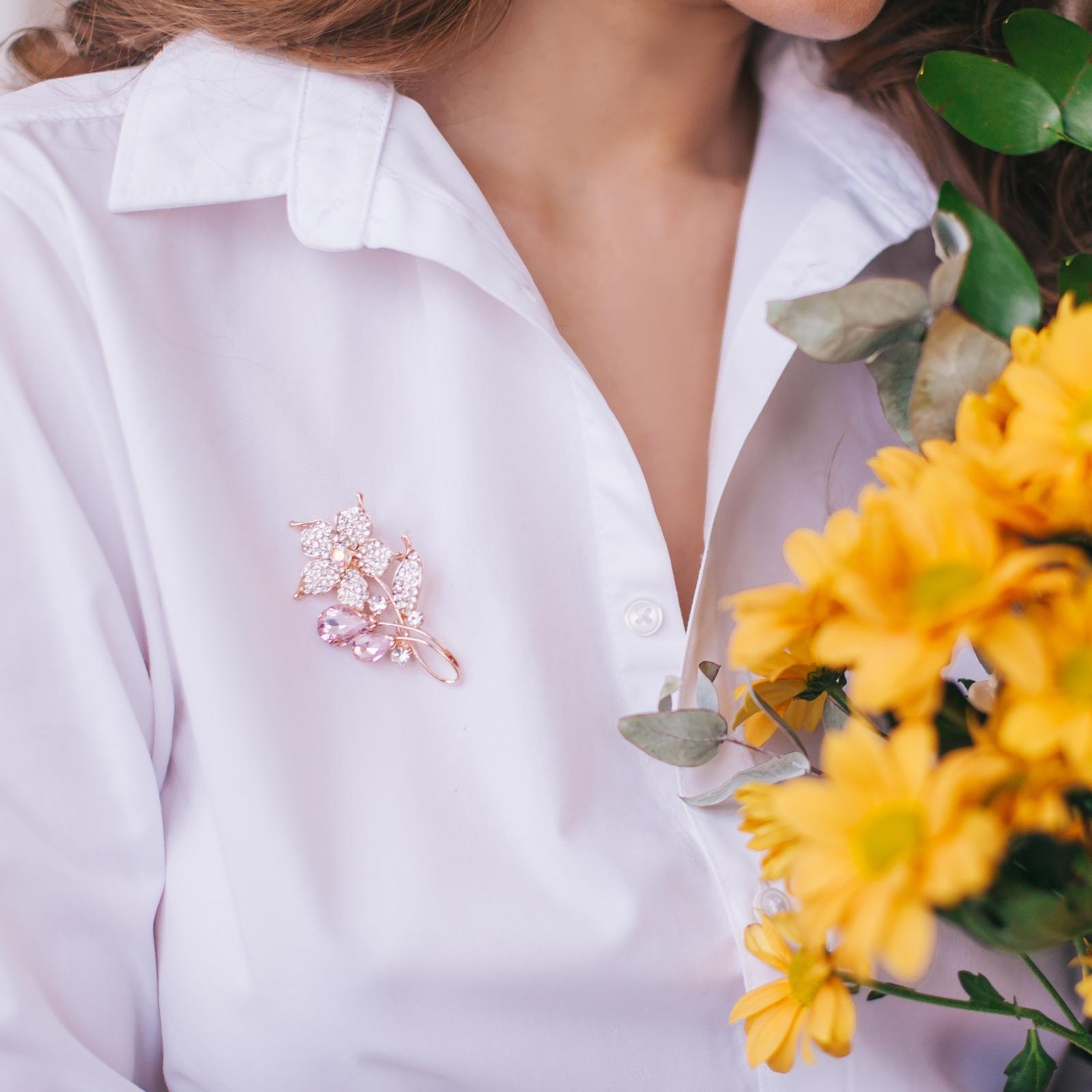 Брошь "Цветок" нежности, цвет розово-белый в золоте