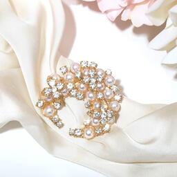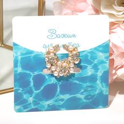 Зажим для платка "Жемчужное соцветие", цвет белый в золоте