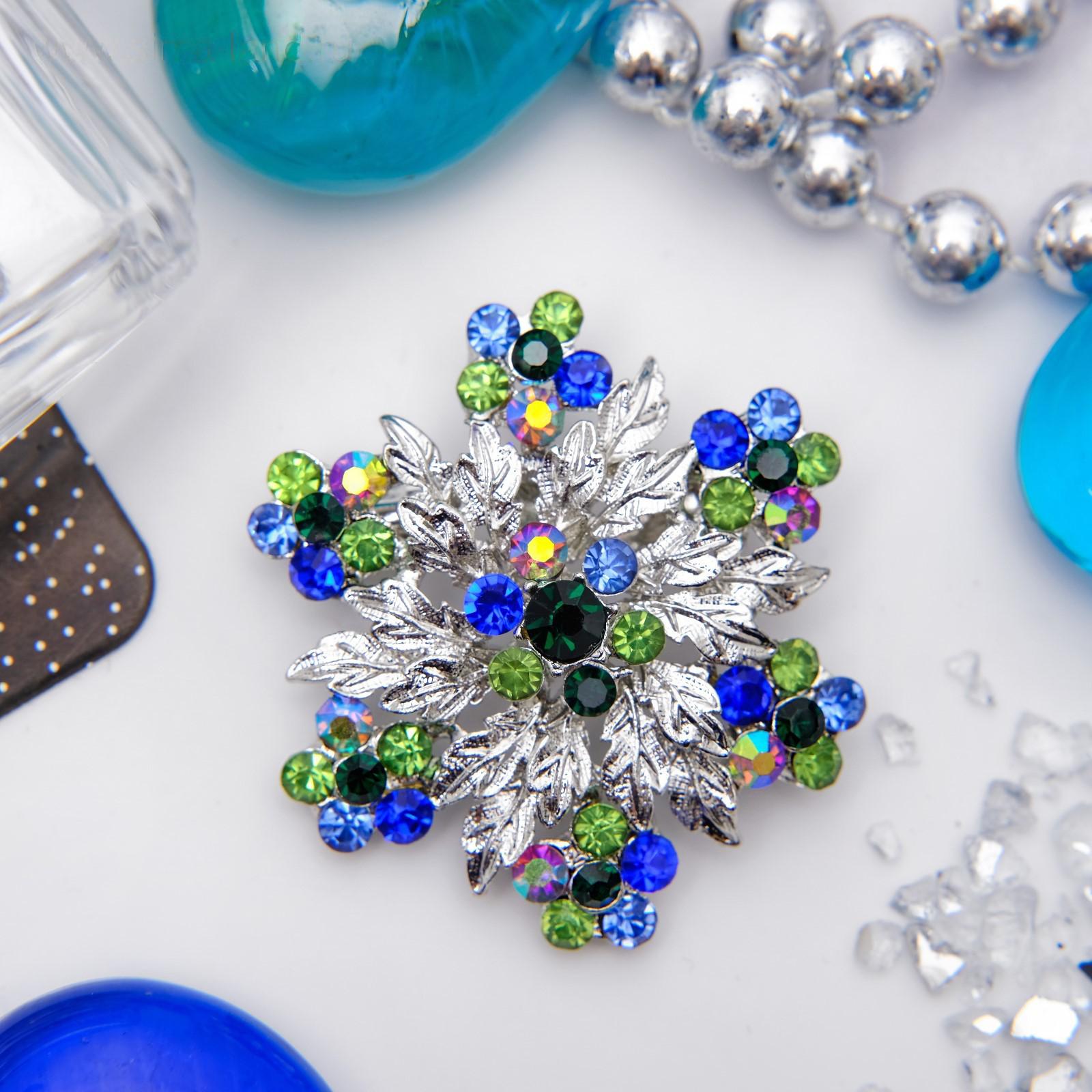 Брошь "Цветок" аралия, цвет сине-зеленый в серебре