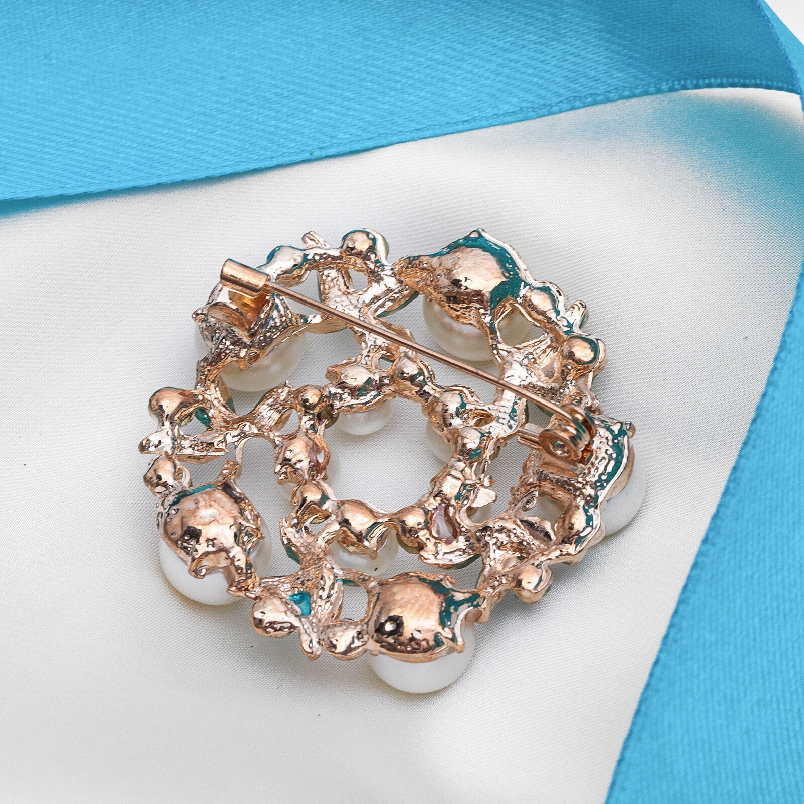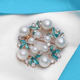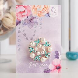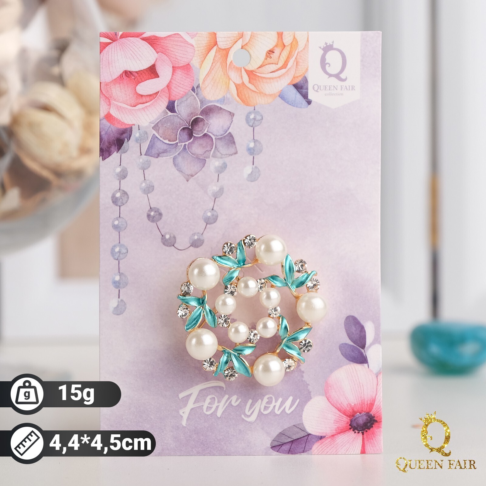 Брошь "Жемчуг с лепестками", цвет бело-голубой в золоте