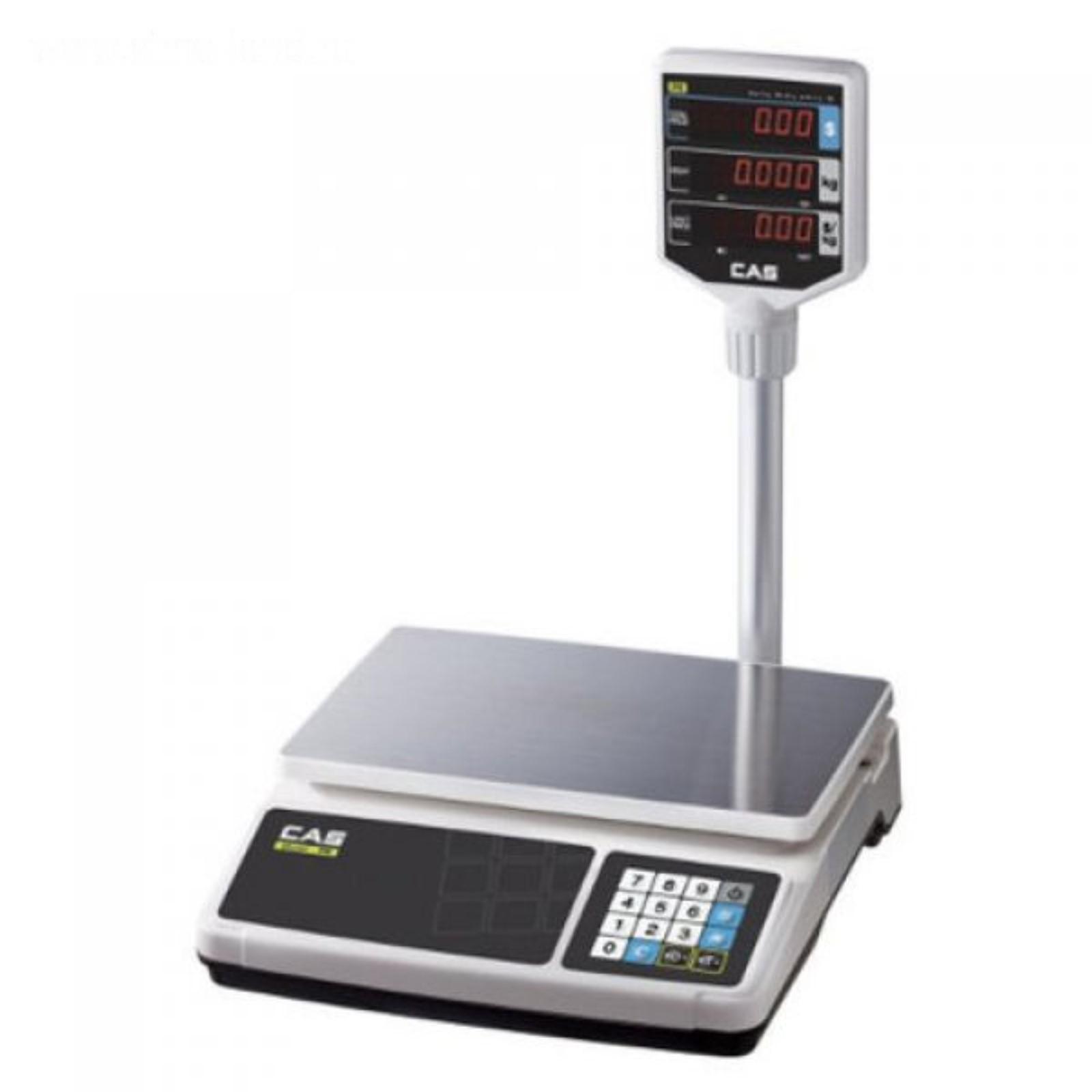 Весы торговые CAS PR-15B (LCD.II) - качественные и надежные настольные весы бюджетного класса для простого взвешивания, фасовки и определения общей стоимости продуктов, исходя из имеющийся массы (в пересчете на килограмм веса).