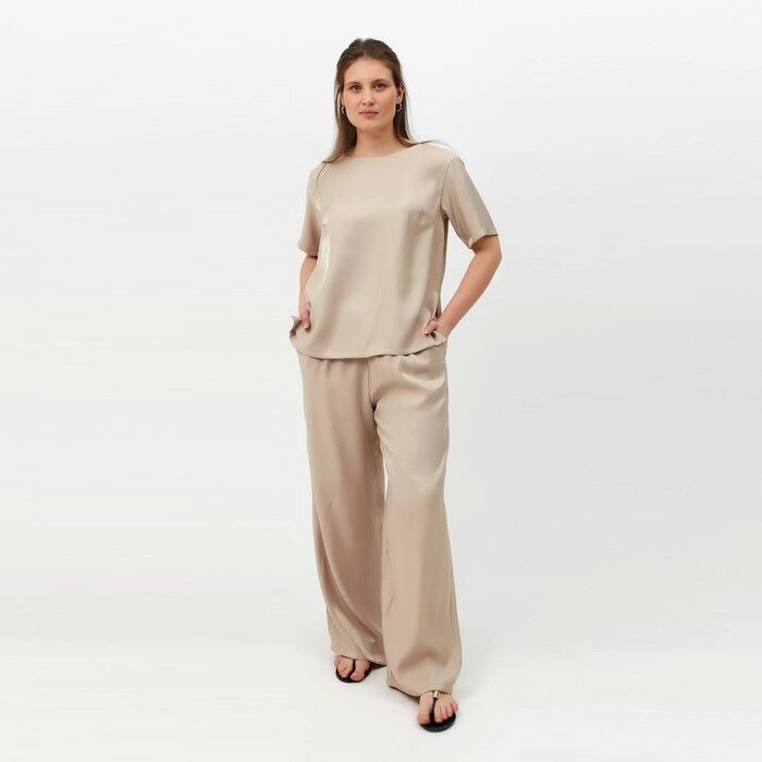 Комплект женский (футболка, брюки) MINAKU: Enjoy цвет бежевый, р-р 50