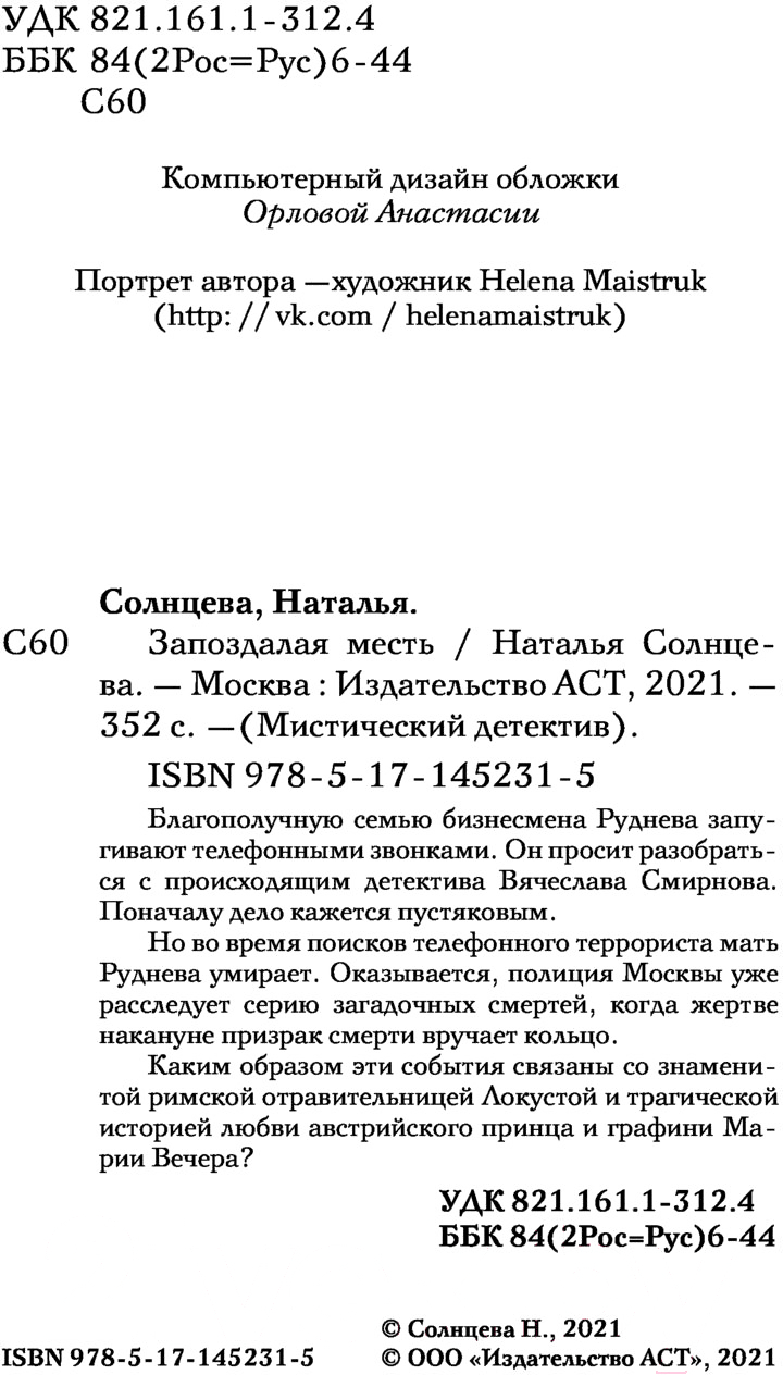 Книга АСТ Запоздалая месть. Мистический детектив (Солнцева Н.)