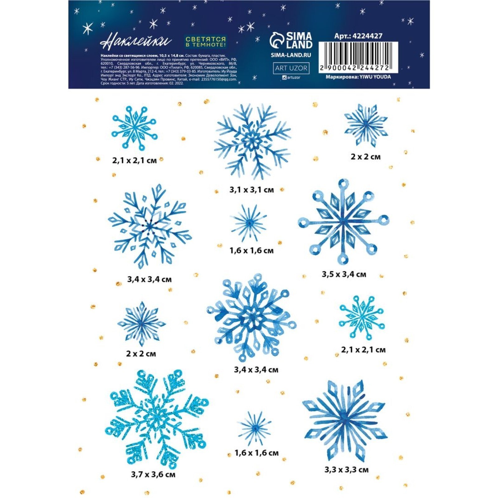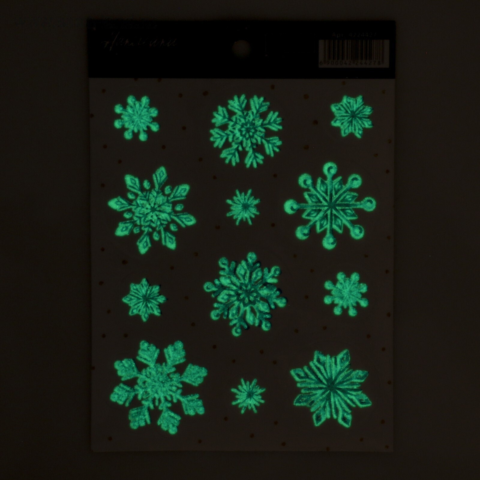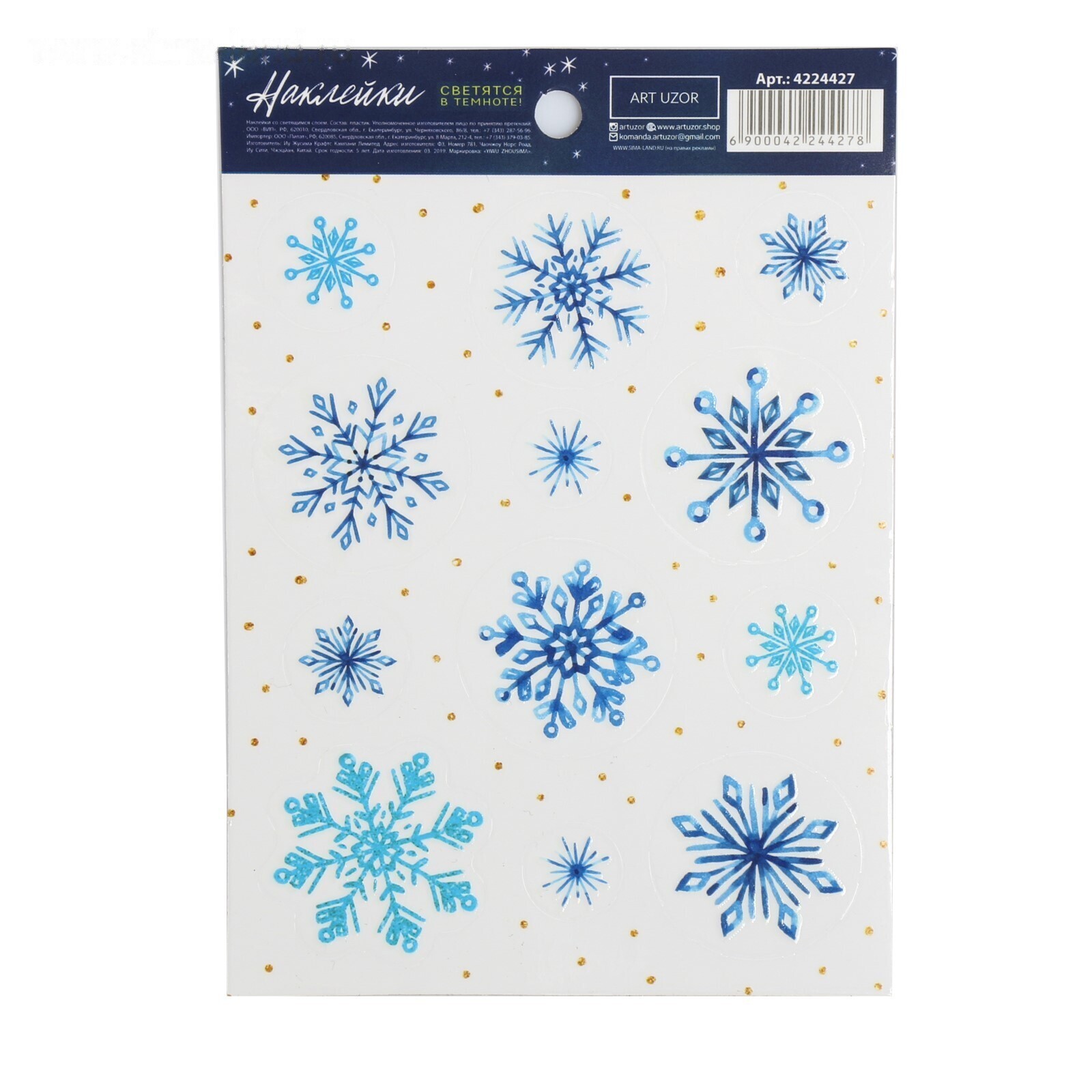 Наклейка со светящимся слоем «Акварельные снежинки», 10,5 х 14,8 см