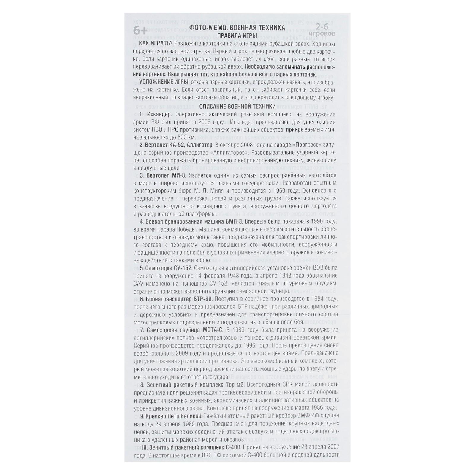 Настольная игра фото-мемо «Военная техника», 40 карточек