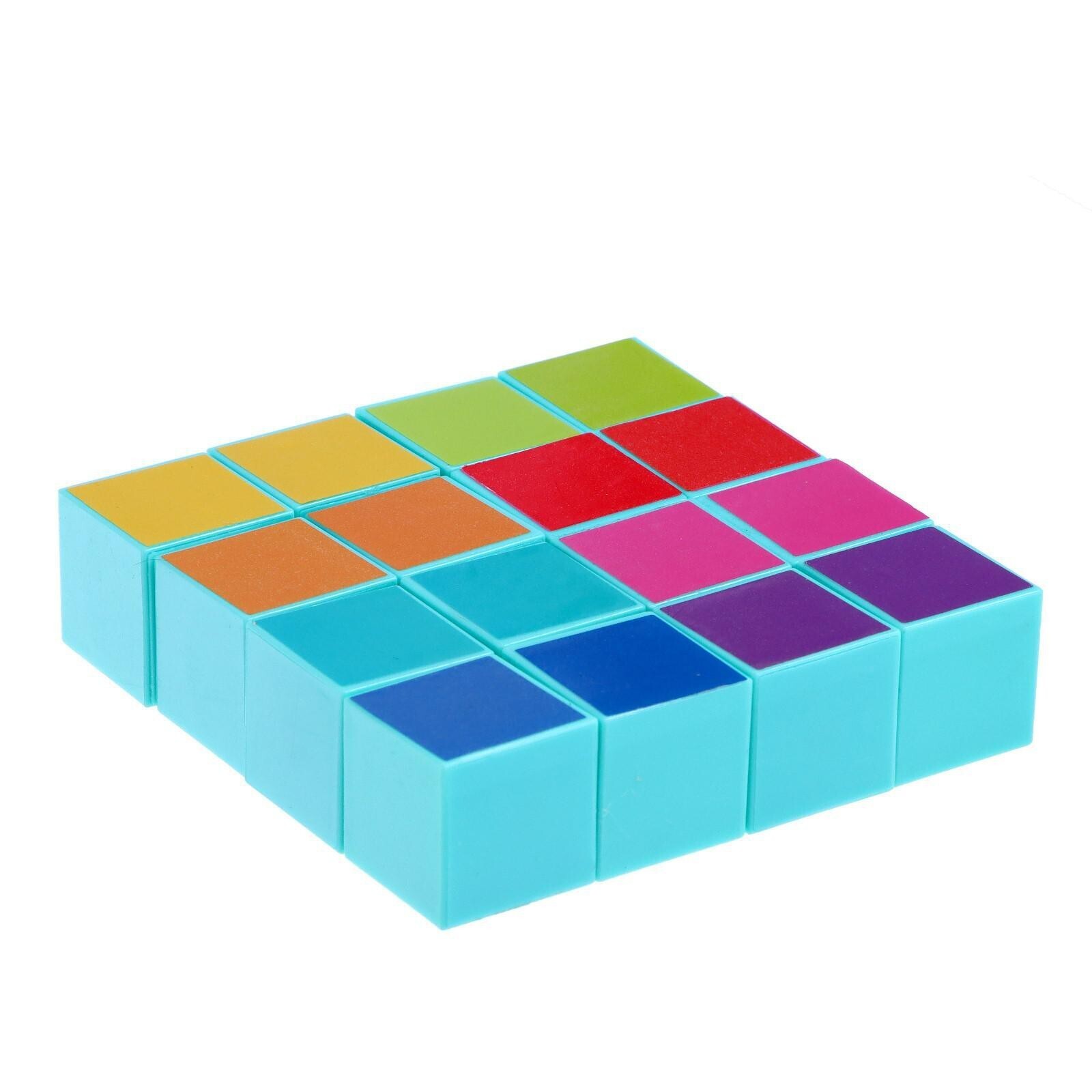 Задача малыша — показать пары одинаковых кубиков. Если ребёнок нашёл их, то забирает себе, в противном случае теряет баллы. Для интересной игры используйте карточки-задания с весёлыми звуками.