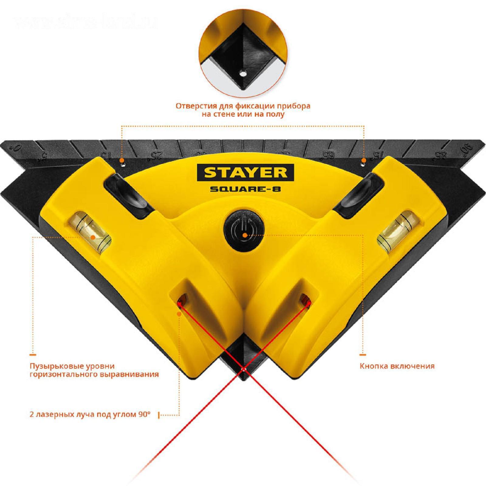 Угольник лазерный STAYER SQUARE-8 34928, для кафеля, 8 м, точн. +/-0,4 мм/м