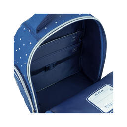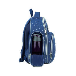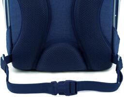 Модель увібрала в себе все найкраще від каркасних і м'яких. Напівкаркасна конструкція ущільнена з трьох сторін та відмінно тримає форму. Щільні бічні панелі захищають вміст рюкзака від пошкоджень і допомагають дитині підтримувати порядок. М'яка сторона полегшує загальну вагу на 15-20%.