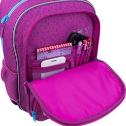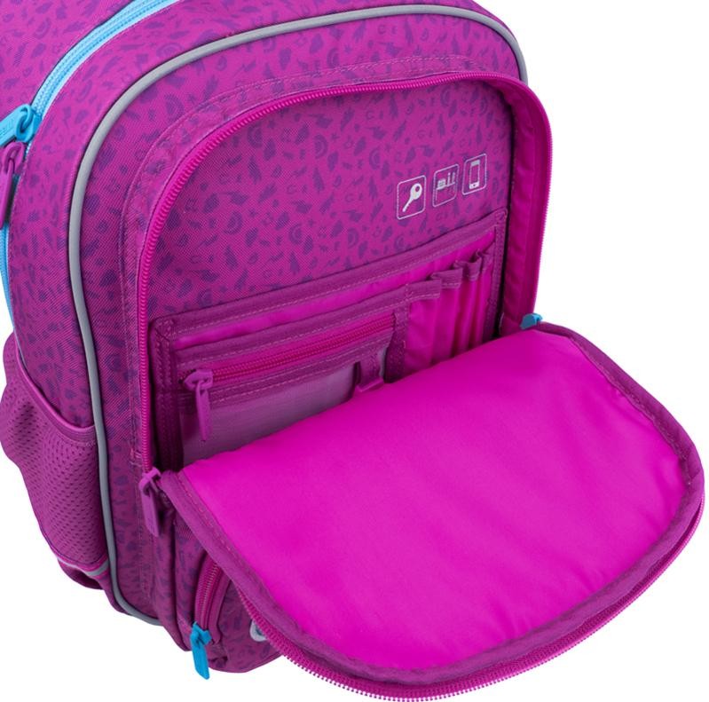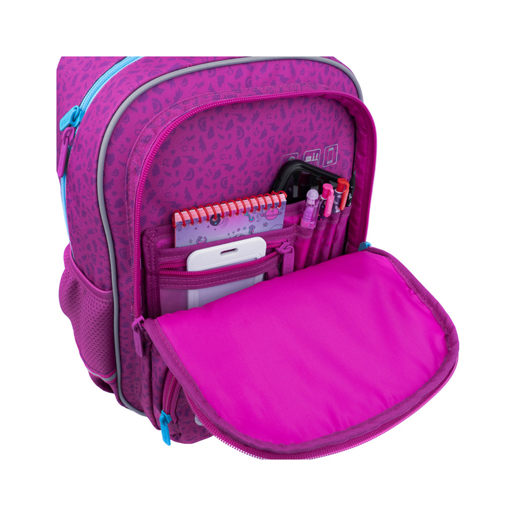 Модель з максимальною кількістю кишень: 3 внутрішні, 2 бокові, 2 фронтальні та 1 потайна. Продумана організація внутрішнього простору – гарантія бездоганного порядку та охайного зберігання шкільного приладдя. Все красиво та «по поличках»: для кожного канцелярського предмета – своє власне місце.