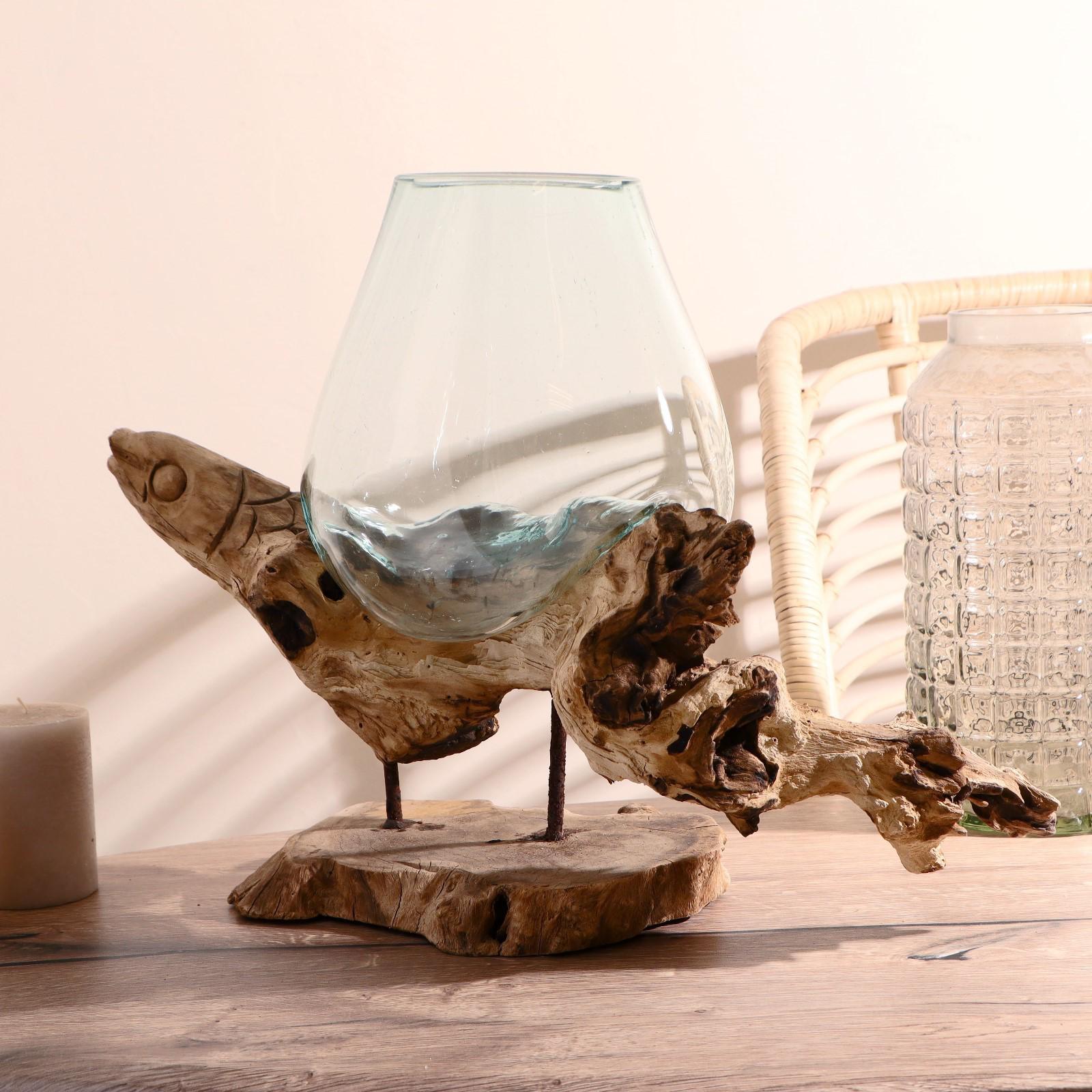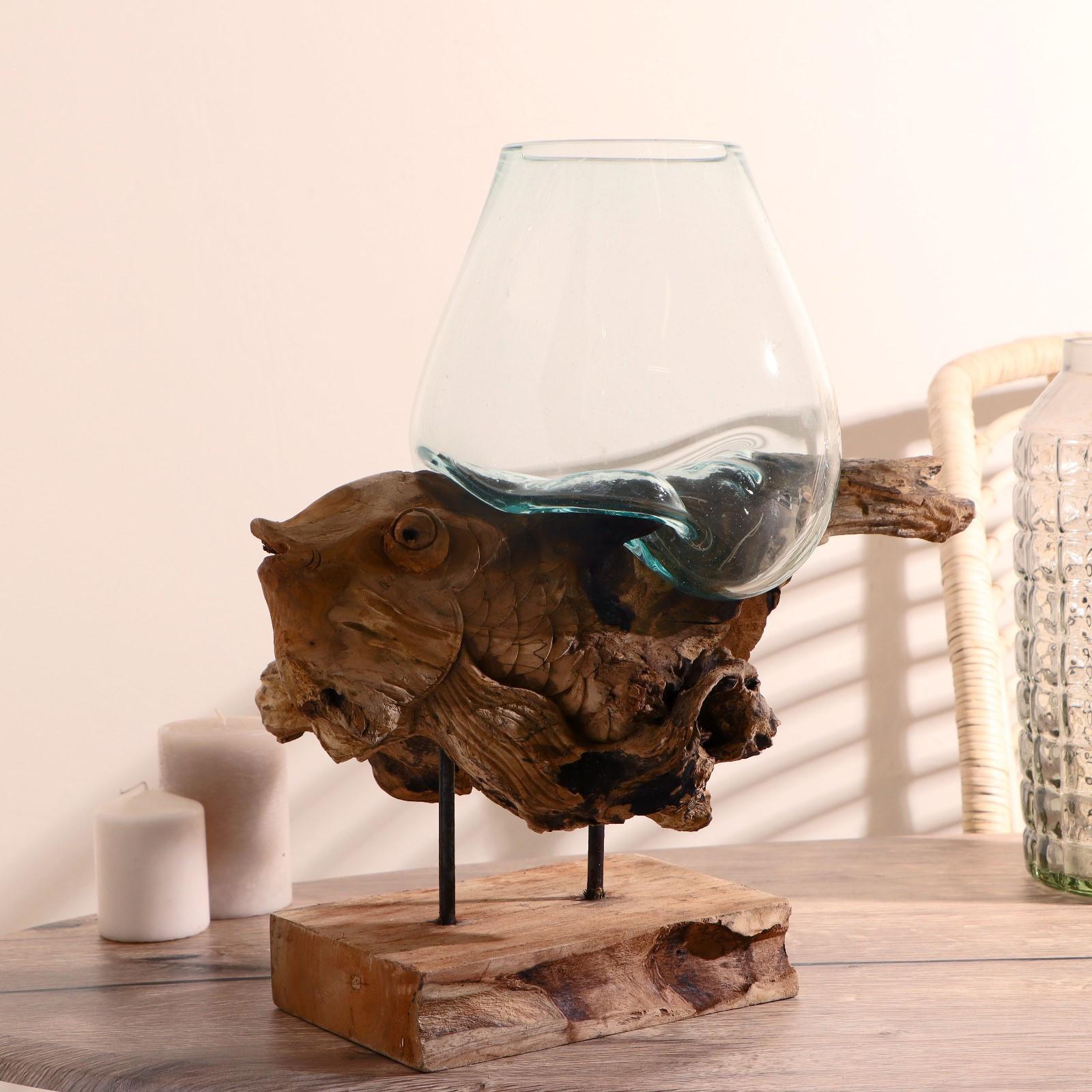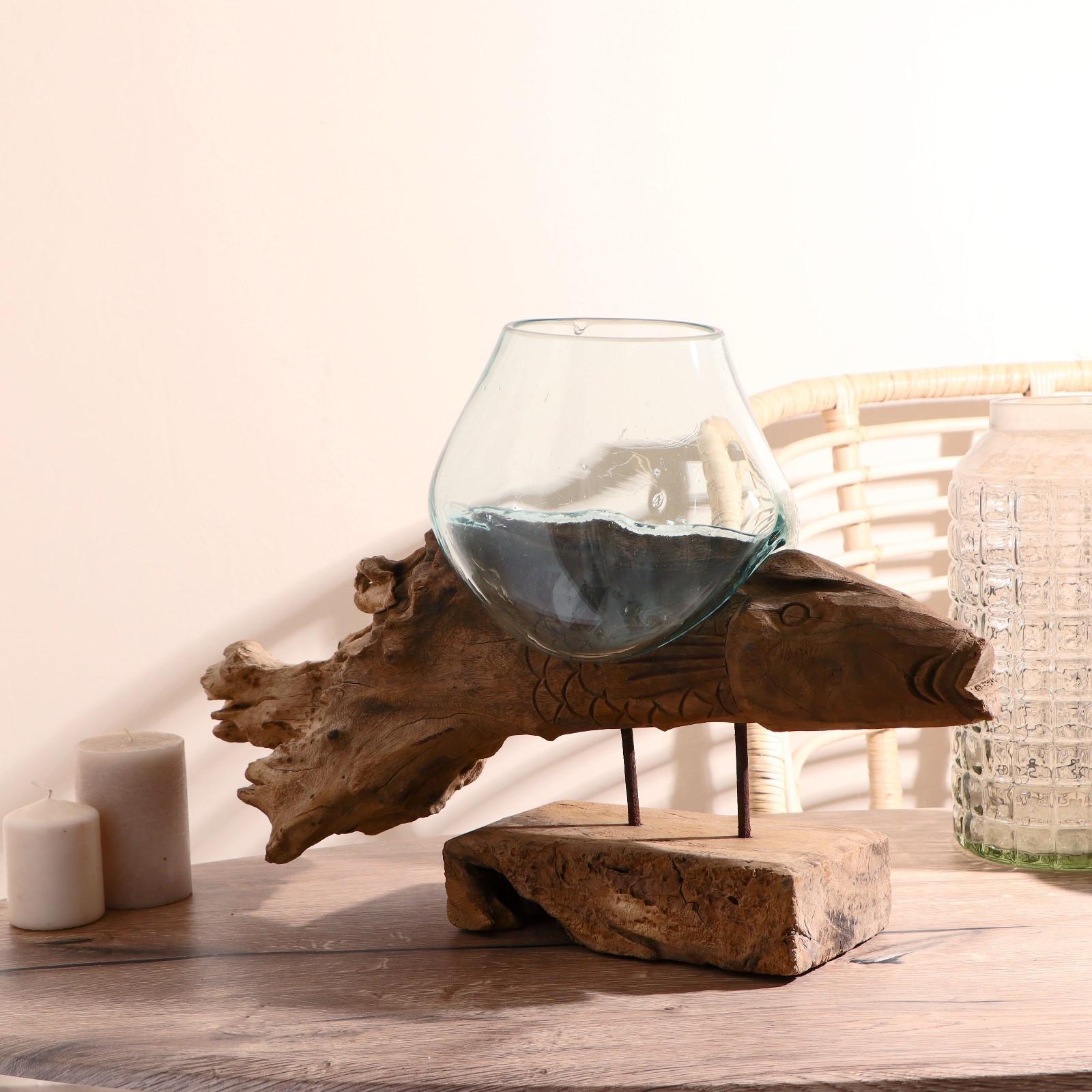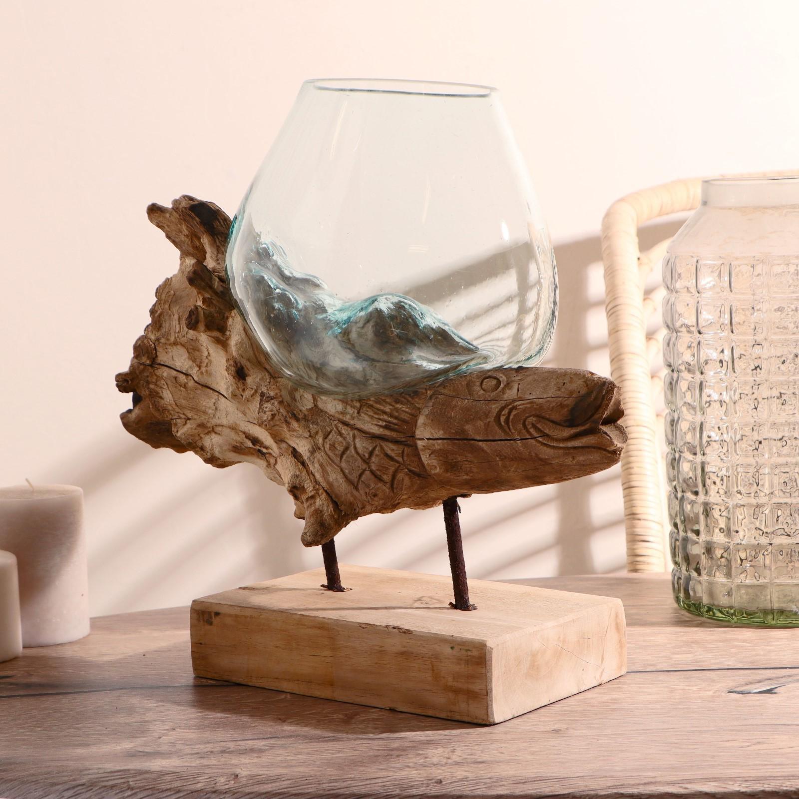 Вазон стекло на дереве "Морские обитатели" МИКС 50х30х25 см
