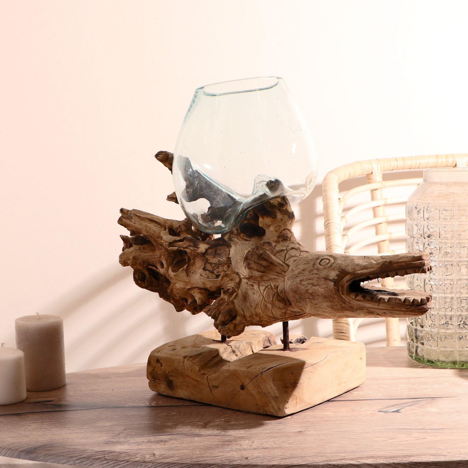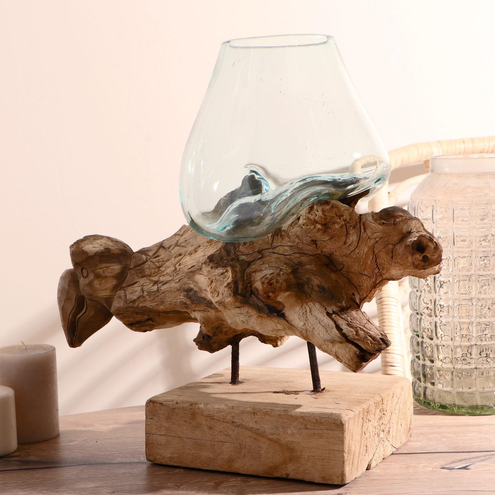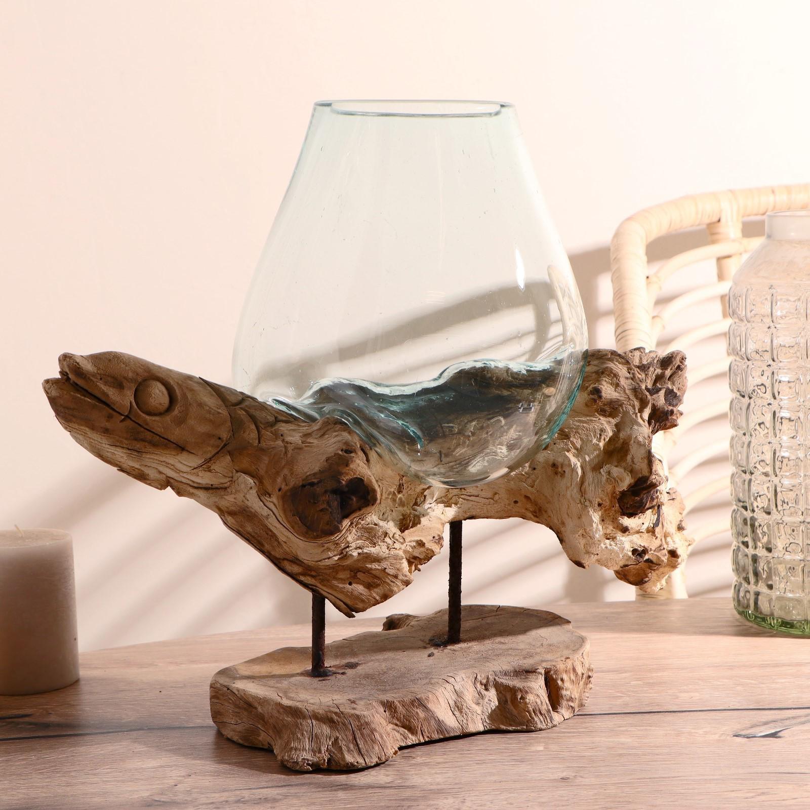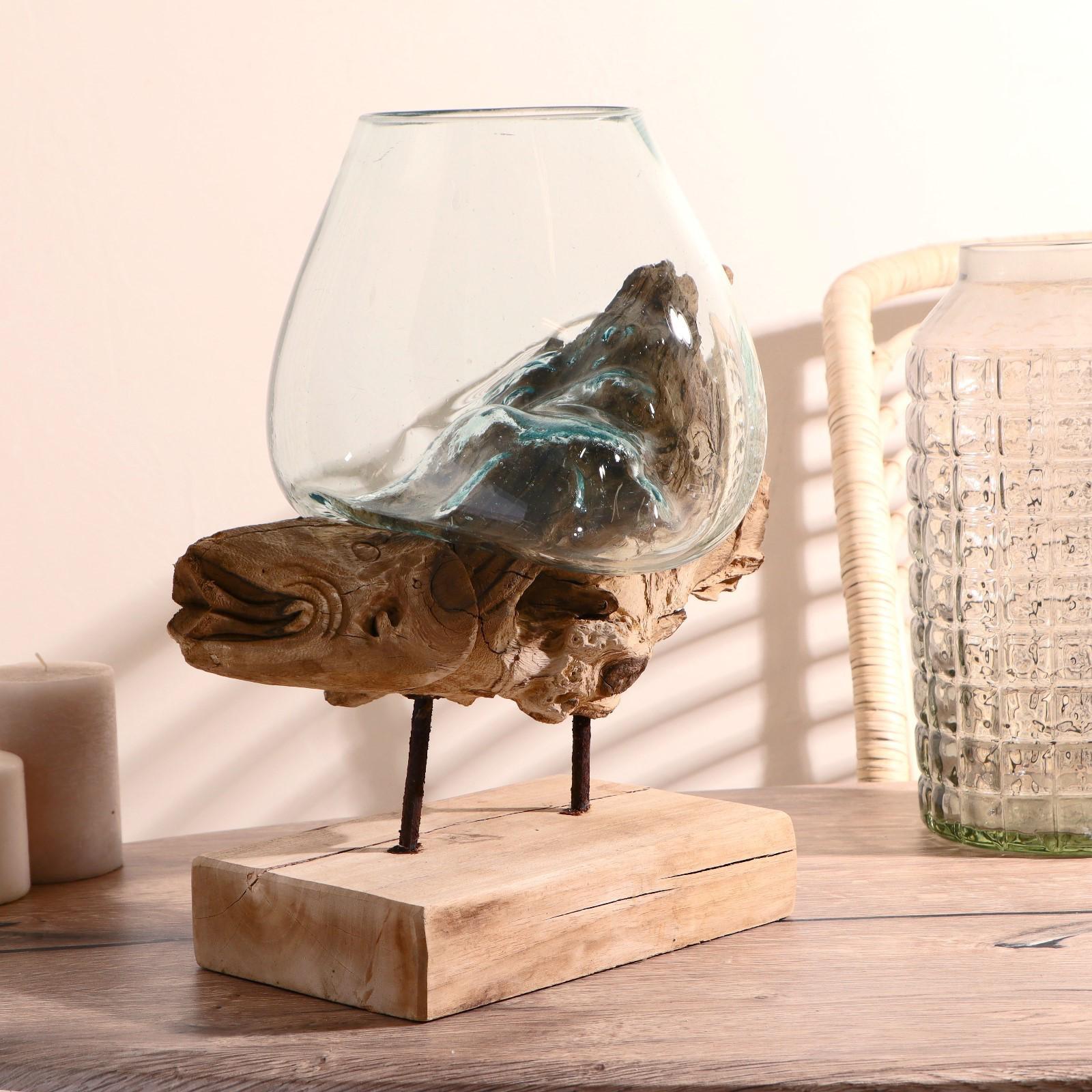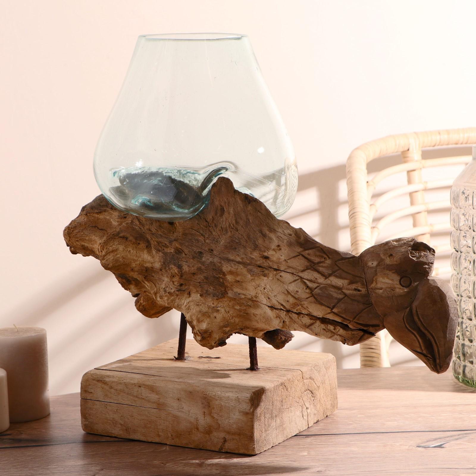 Вазон стекло на дереве "Морские обитатели" МИКС 50х30х25 см